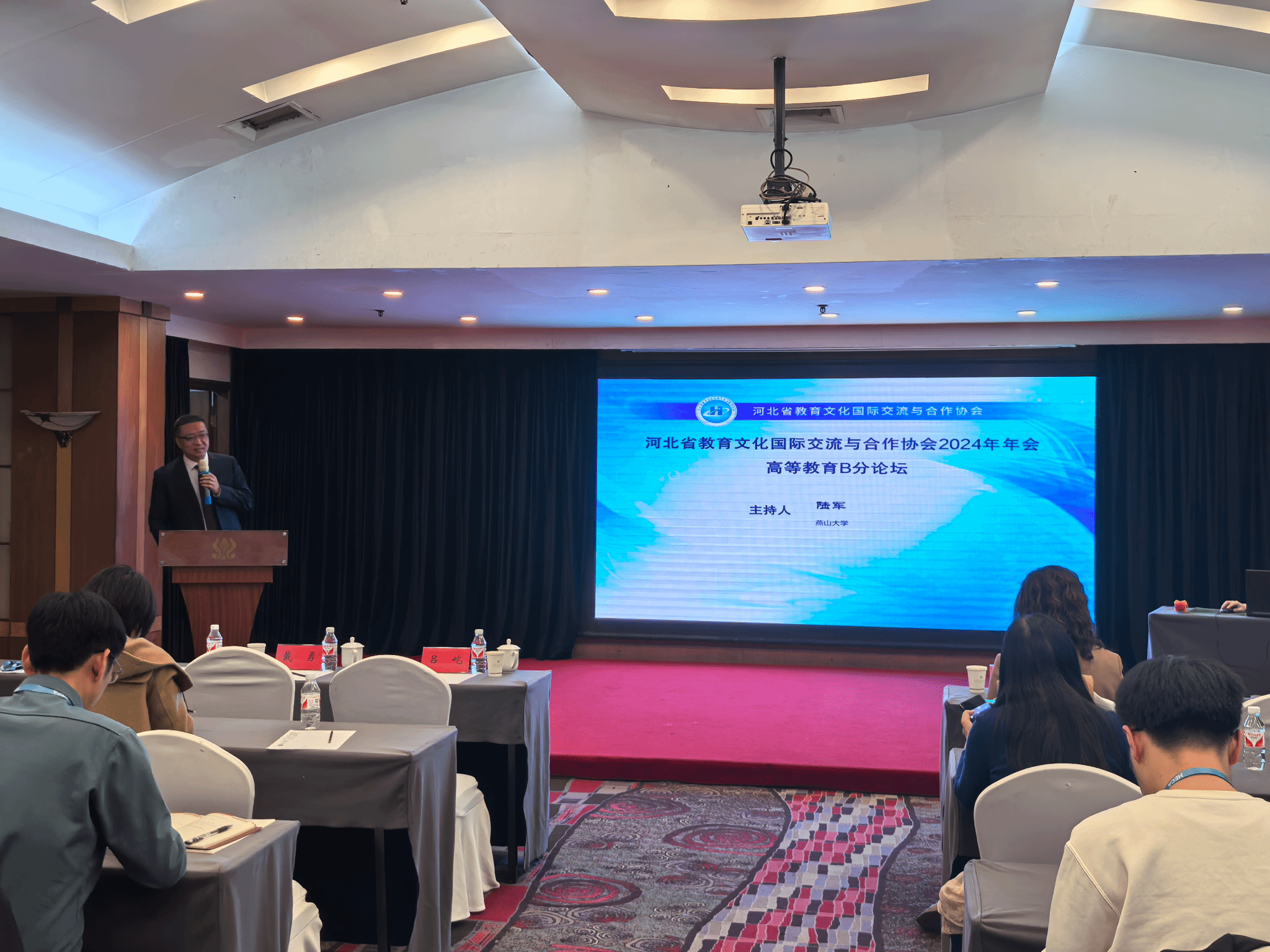在石家庄举办的协会2024年年会上,燕山大学国际合作处处长陆军作为国际产学研合作促进(一带一路)分会(筹)秘书长主持了高等教育平行论坛。