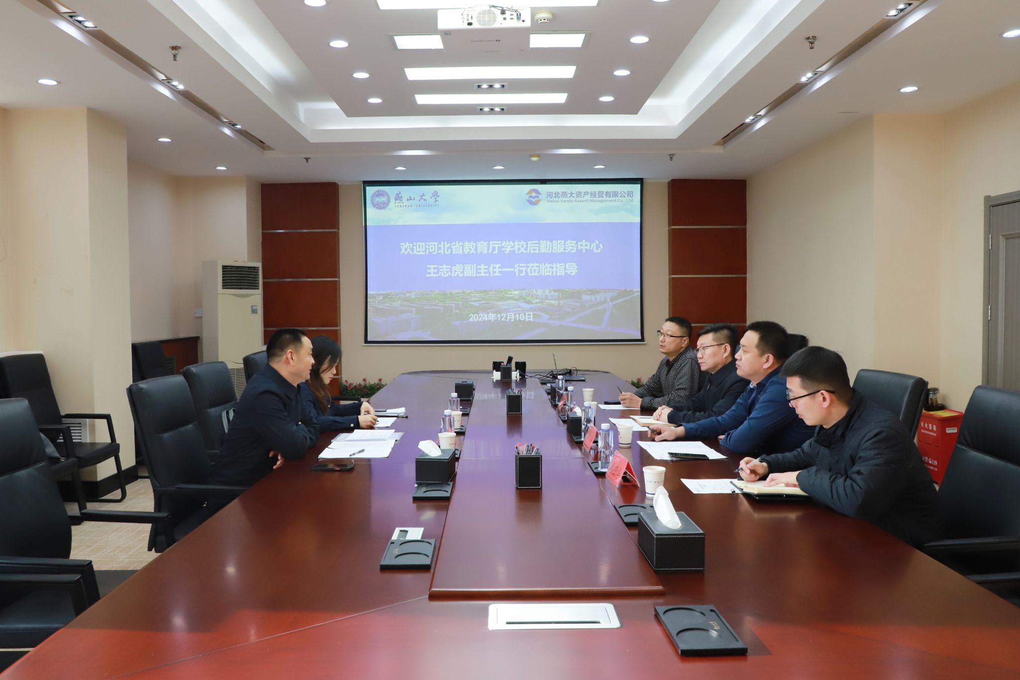 【新闻中心讯】12月10日,河北省教育厅学校后勤服务中心副主任王志虎一行来校调研我校校属企业发展工作,党委常委、副校长陈国强出席调研座谈会,会议由河北燕大资产经营有限公司总经理贾晓光主持。