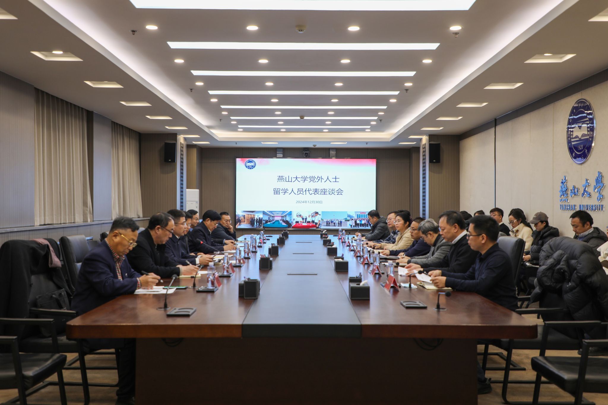 【新闻中心讯】12月30日下午,燕山大学2024年党外人士、留学人员代表座谈会在世纪楼2103会议室召开。党委书记赵险峰,党委副书记、校长赵丁选,党委常委、副校长王跃华出席座谈会,燕山大学各民主党派、侨联、知联会、欧美同学会负责人、优秀代表等20余人参加了座谈会。会议由王跃华主持。