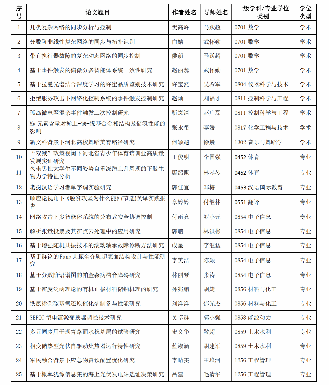 我校2024年河北省优秀硕士学位论文名单(25篇)