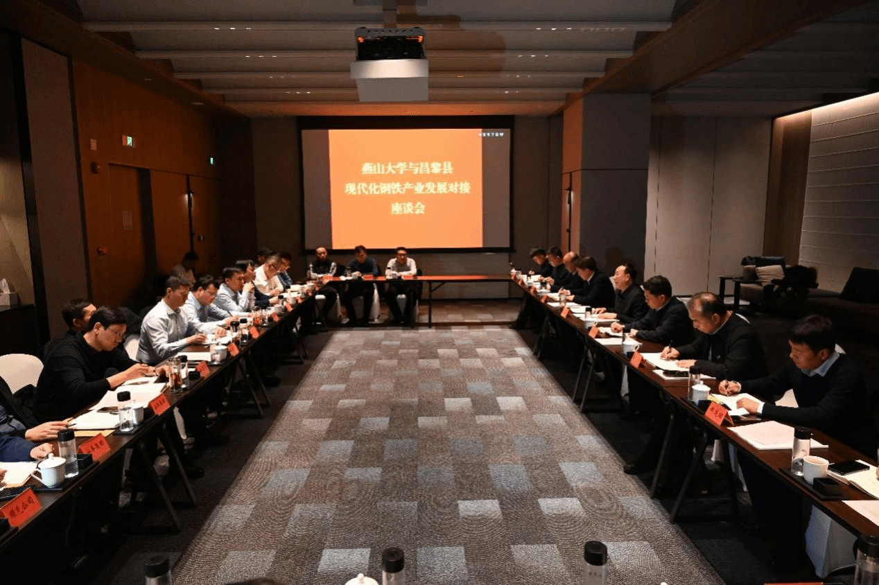 【新闻中心讯】为深入贯彻落实河北省委十届七次全会暨省委经济工作会议精神,更好地服务县域特色经济发展,在秦皇岛市政协积极协调下,1月9日,燕山大学与昌黎县现代化钢铁产业发展对接座谈会在昌黎县召开。秦皇岛市政协主席闫五一,学校党委书记赵险峰,昌黎县委书记孙谓青,昌黎县委副书记、县政府县长李清,以及河北安丰钢铁集团有限公司、秦皇岛宏兴钢铁集团有限公司、昌黎县兴国精密件有限公司等11家昌黎县钢铁装备类企业负责人出席会议。