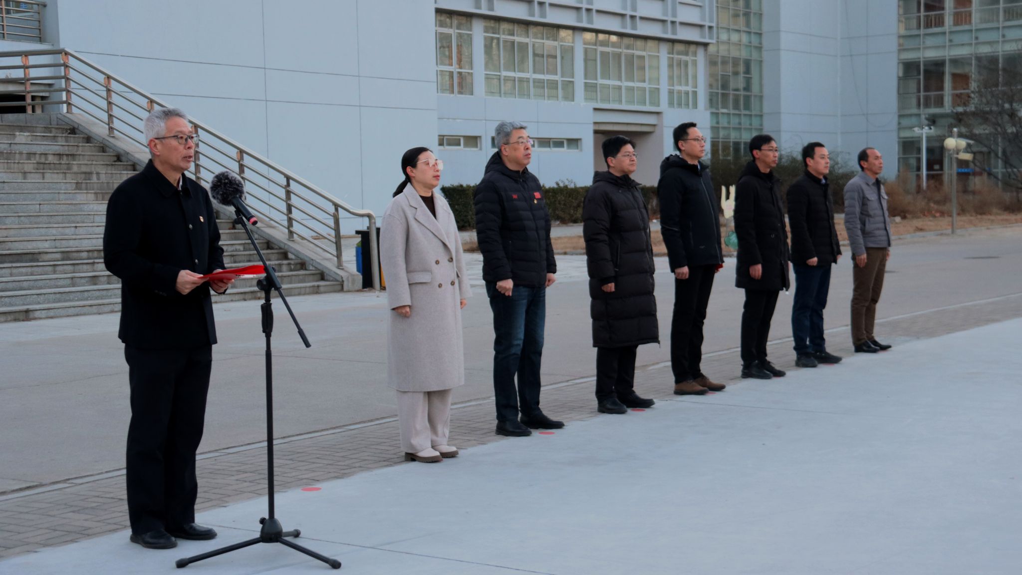 【新闻中心讯】2月17日上午7:00,我校2025年春季学期开学升旗仪式分别在东校区第一体育场、西校区第四体育场和里仁学院实验楼前举行。赵险峰、赵丁选、孙录印、蔡星周、王德松、陈国强、黄传真、汪殿龙、王跃华、李春玲等校领导参加了升旗仪式。升旗仪式分别由学生工作处处长薛传佳、团委书记段磊、里仁学院党委书记张向前主持。