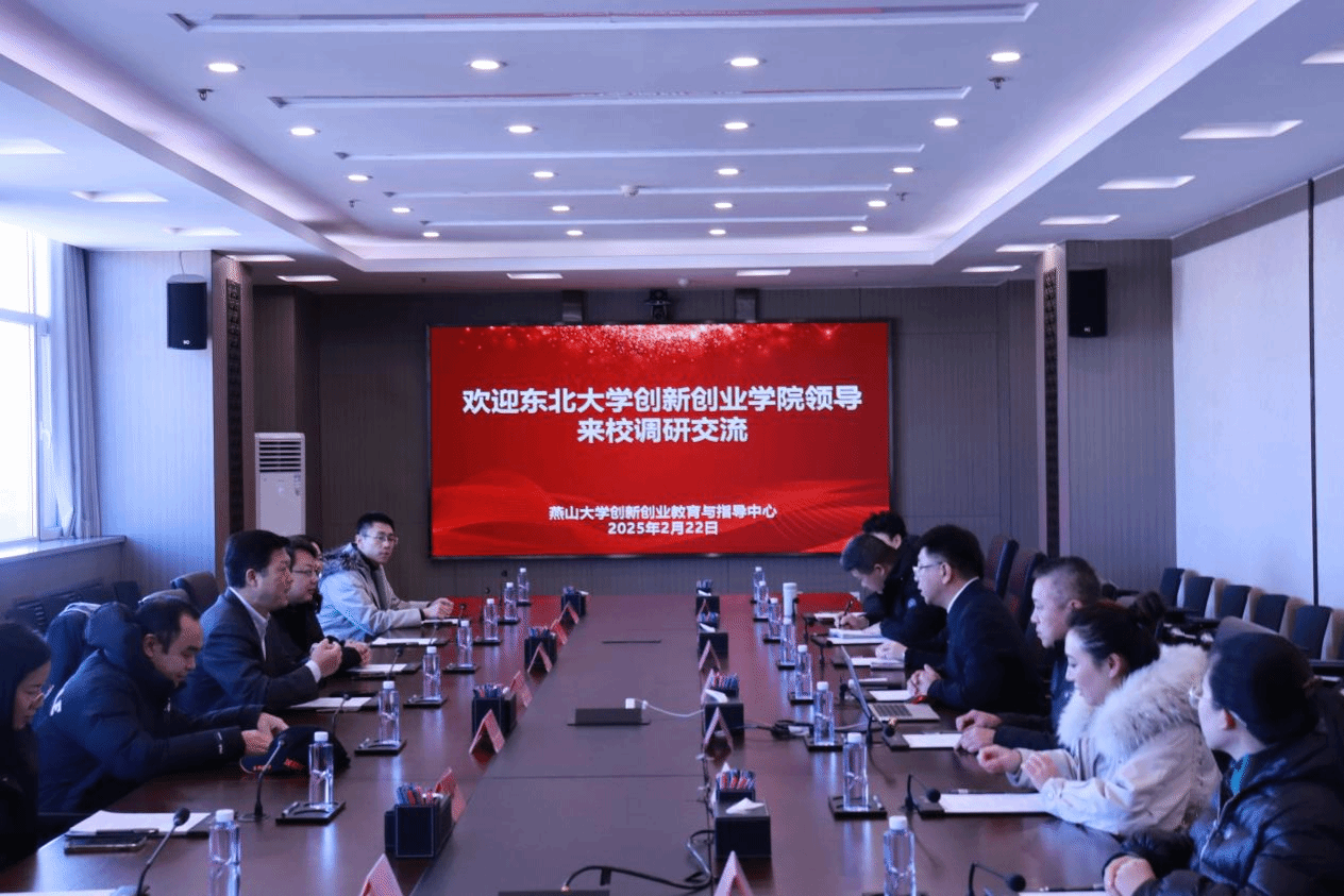 【新闻中心讯】2月22日上午,东北大学创新创业学院常务副院长李鹤、副院长黄达,东北大学秦皇岛分校大学生创新创业中心主任吕江涛等一行七人到燕山大学调研并进行座谈交流。燕山大学创新创业教育与指导中心主任张杨、副主任李德凡,燕山大学创新创业教育指导委员会副主任委员谢平等参加了座谈交流。