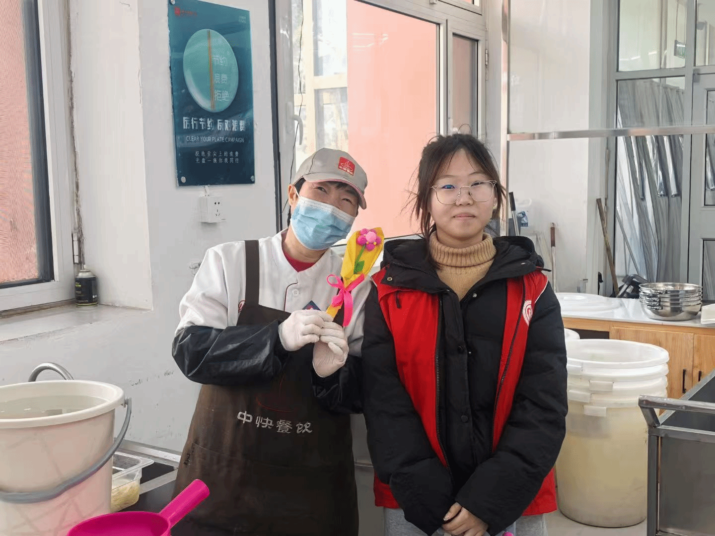为食堂工作人员赠送爱心花束