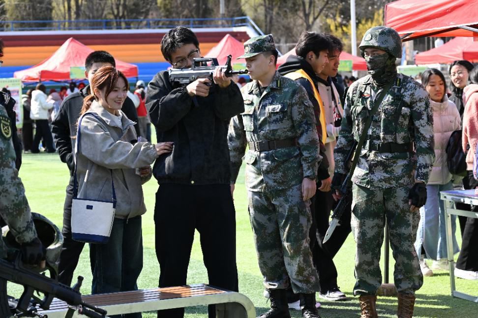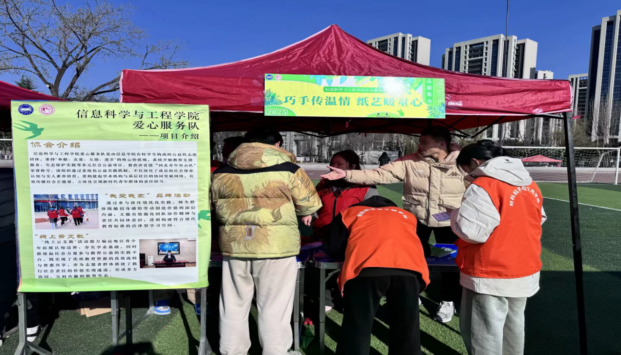在志愿服务区,各展位以多样形式架起心与心相连的桥梁。材料科学与工程学院柠檬树青年志愿者协会以传统香囊制作为载体,指导参与者调配中药材香料,将制作完成的香囊赠予自闭症儿童;信息科学与工程学院爱心服务队开设折纸课堂,带领师生折出千纸鹤、玫瑰花等作品,并附上祝福信件寄往留守儿童学校;国防后备营设置军事装备体验区,通过模拟射击、防毒面具操作等互动,让学子在热血实践中感悟家国担当;理学院微风服务队的展位前,同学们提笔写下对未来的期许、对陌生人的鼓励,让文字成为传递温情的纽带。每一份手作、每一次互动、每一封信笺,都在细微处传递着善意与力量。