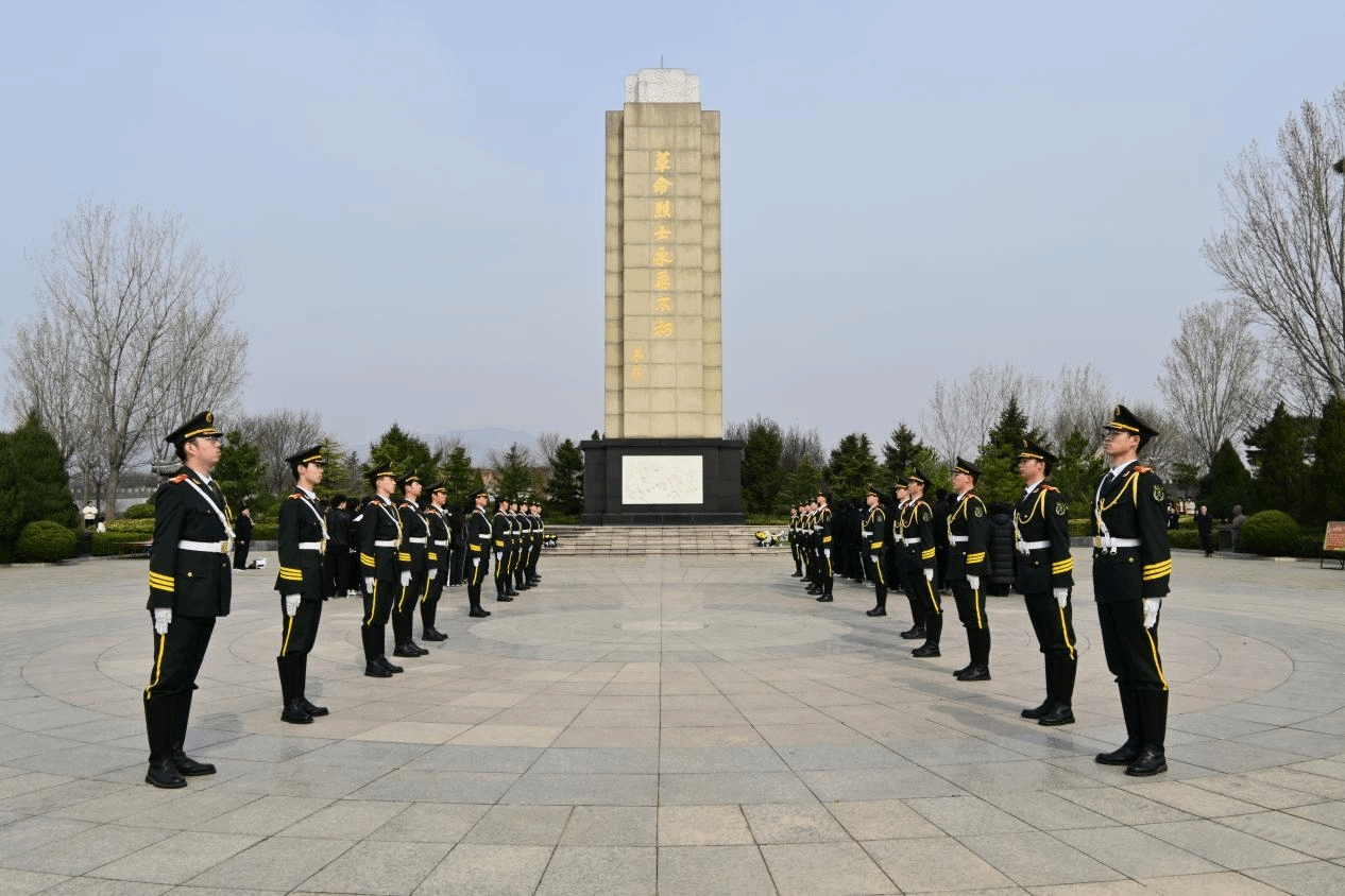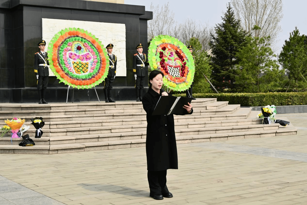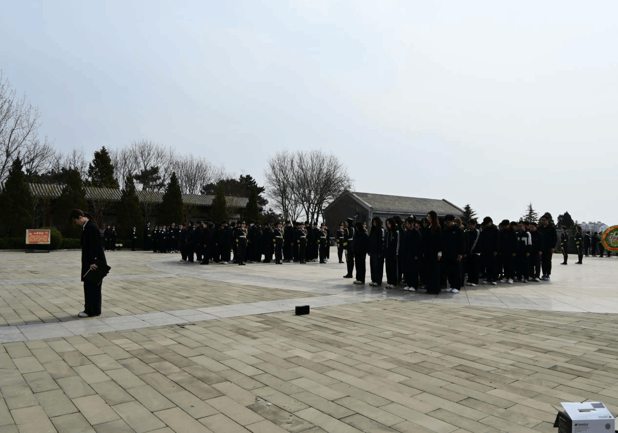 在庄重的《献花曲》中,国旗护卫队代表全体师生向烈士纪念碑敬献花篮,全体人员面向纪念碑三鞠躬并默哀致敬。陵园内青松翠柏环绕,镌刻着英烈事迹的纪念碑无声诉说着革命年代的壮烈篇章。