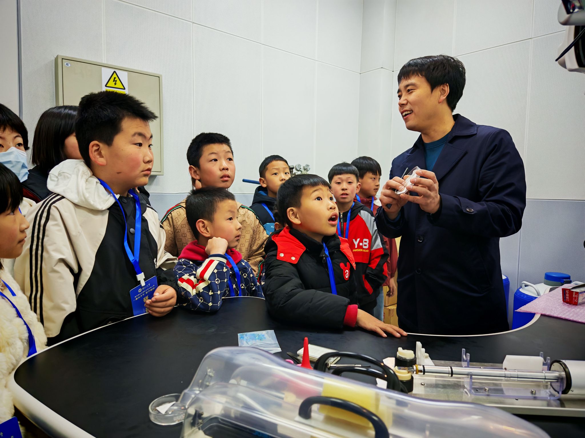 在研学环节,孩子们首先走进亚稳材料全国重点实验室,近距离感受前沿科研魅力,科研人员的生动讲解,让孩子们对新材料科学有了初步认知;在理学院科学体验课上,趣味实验与科学知识深度融合,孩子们踊跃参与,在实践中探索科学奥秘;在图书馆,浩瀚的书海引起孩子们阵阵惊叹,激励着他们立志遨游知识的海洋;机械工程学院机器人创新团队展示的先进机器人,激发了孩子们对机械工程领域的浓厚兴趣。体验过大学食堂美食后,孩子们还先后参观了燕山大学校史陈列馆、东北亚古丝路文明博物馆,在校史馆,厚重的校史脉络和燕山大学参与的国家重大工程项目,激发了孩子们长大后报效祖国的雄心壮志;在东北亚古丝路文明博物馆,史前巨兽的骨架和珍贵文物,为孩子们打开了一扇了解古代文明的窗口。