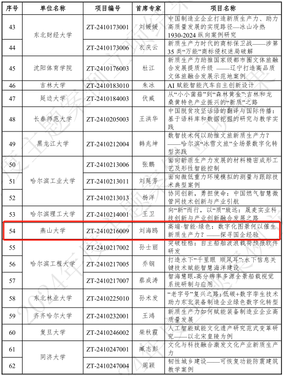 【新闻中心讯】近日,教育部学位与研究生教育发展中心、中国专业学位案例中心公布了2024年度主题案例征集评审结果,我校经济管理学院刘海鸥教授团队申报的《高端·智能·绿色:数字化图景何以催生新质生产力?——探寻国企经验》获批立项。