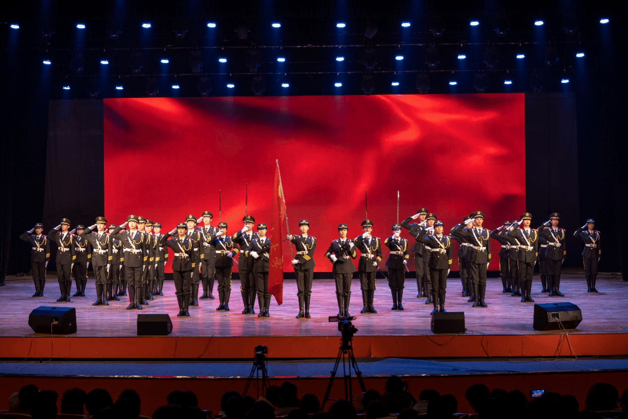 第一篇章“溯源·旗扬曙光”回望历史,致敬英雄。情景演绎《青春》将歌声与时代记忆交织,勾勒青年热血担当的精神图谱;融合展示《悬崖》重现革命年代的生死抉择,在紧张叙事中传递信仰的力量;红色故事《红旗新生》以舞台剧重现旗帜引领民族复兴的奋斗史诗,让红色基因在剧情中自然流淌。
