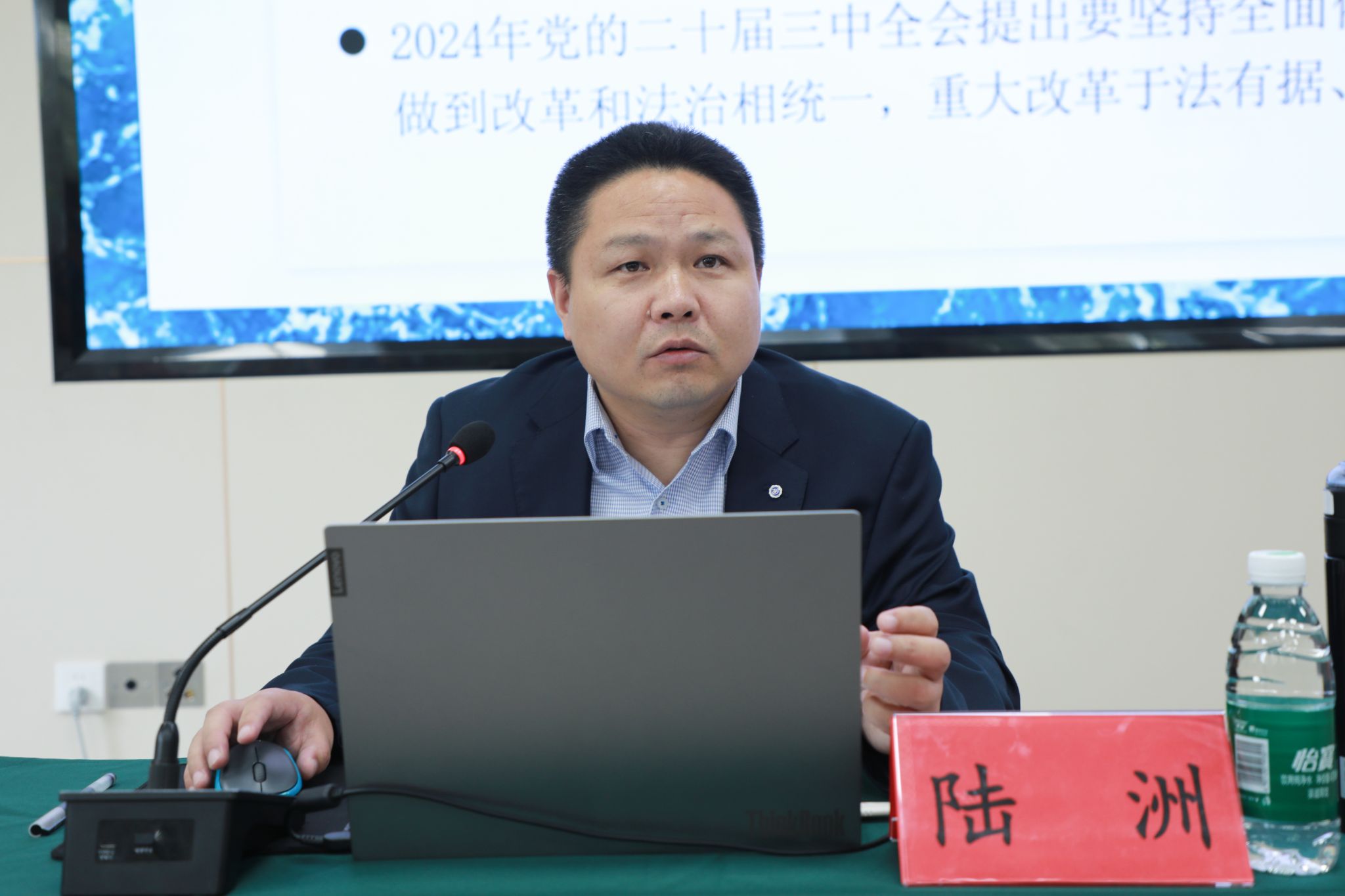 会议邀请学校文法学院教授、博士生导师陆洲作《依法治校的法理构造、风险类型及防范对策》辅导讲座,全校中层及以上干部聆听了讲座。陆洲教授结合典型案例深入剖析依法治校的法理逻辑、潜在风险及应对策略,为参会干部提供了系统性法治思维培训,进一步强化依法治校意识。
