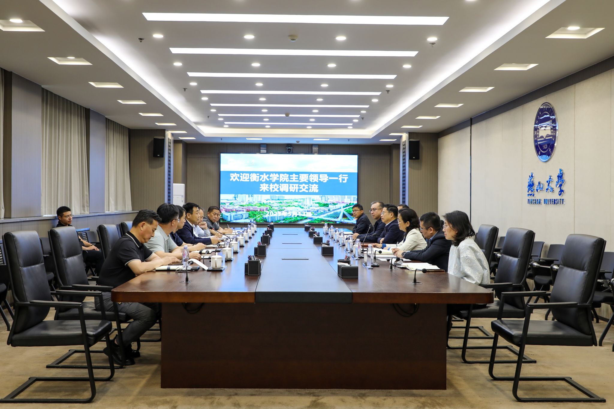 【新闻中心讯】5月13日下午,衡水学院党委书记牛泽彬,党委副书记、校长肖士恩一行8人来我校调研交流。燕山大学党委书记赵险峰,党委常委、副校长李春玲及相关职能部门负责人在世纪楼2103会议室参加了座谈会。会议由李春玲主持。