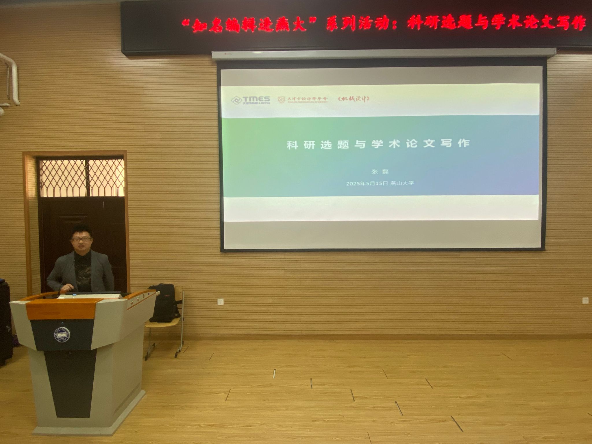 【新闻中心讯】5月15日,“知名编辑进燕大”系列活动第五期在音乐馆B105举办,活动邀请《机械设计》副主编张磊教授作题为《科研选题与乐竞体育在线论文写作》的乐竞体育在线报告。本次活动由期刊社、艺术与设计学院联合举办,期刊社副社长弓洪玮主持,期刊社副社长唐志国、艺术与设计学院副院长刘维尚,以及各学院的百余名师生到场聆听报告。