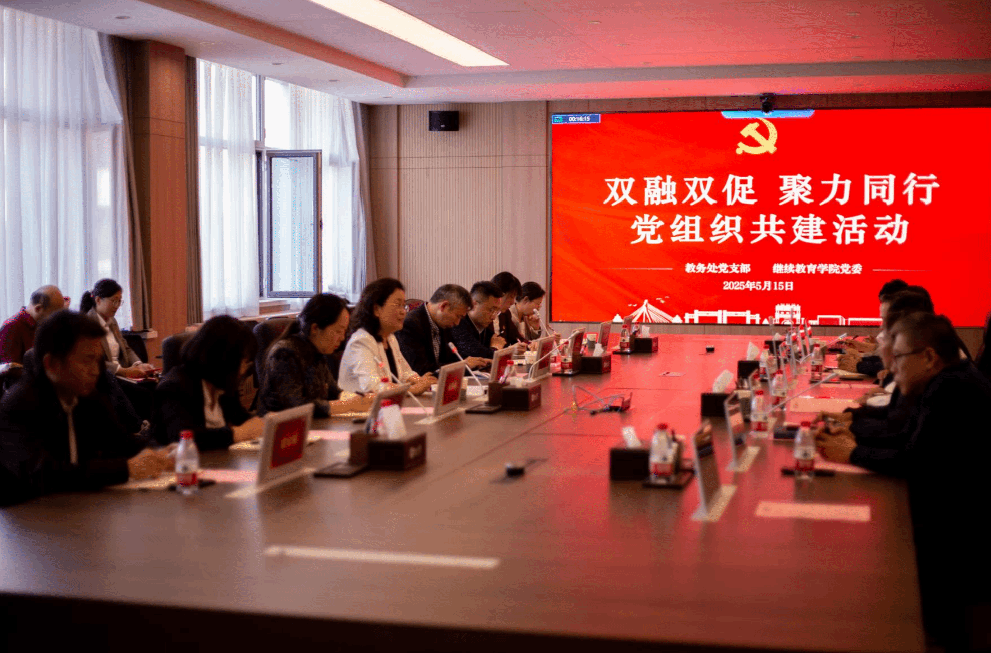 【新闻中心讯】为深化党建引领,促进业务融合,5月15日下午,教务处党支部与继续教育学院党委在西校区生命健康与智能医学楼会议室联合举办了“双融双促,聚力同行”党组织共建活动。校党委常委、副校长李春玲出席并讲话,活动由继续教育学院副院长张宁主持,双方党员代表30余人参加活动。