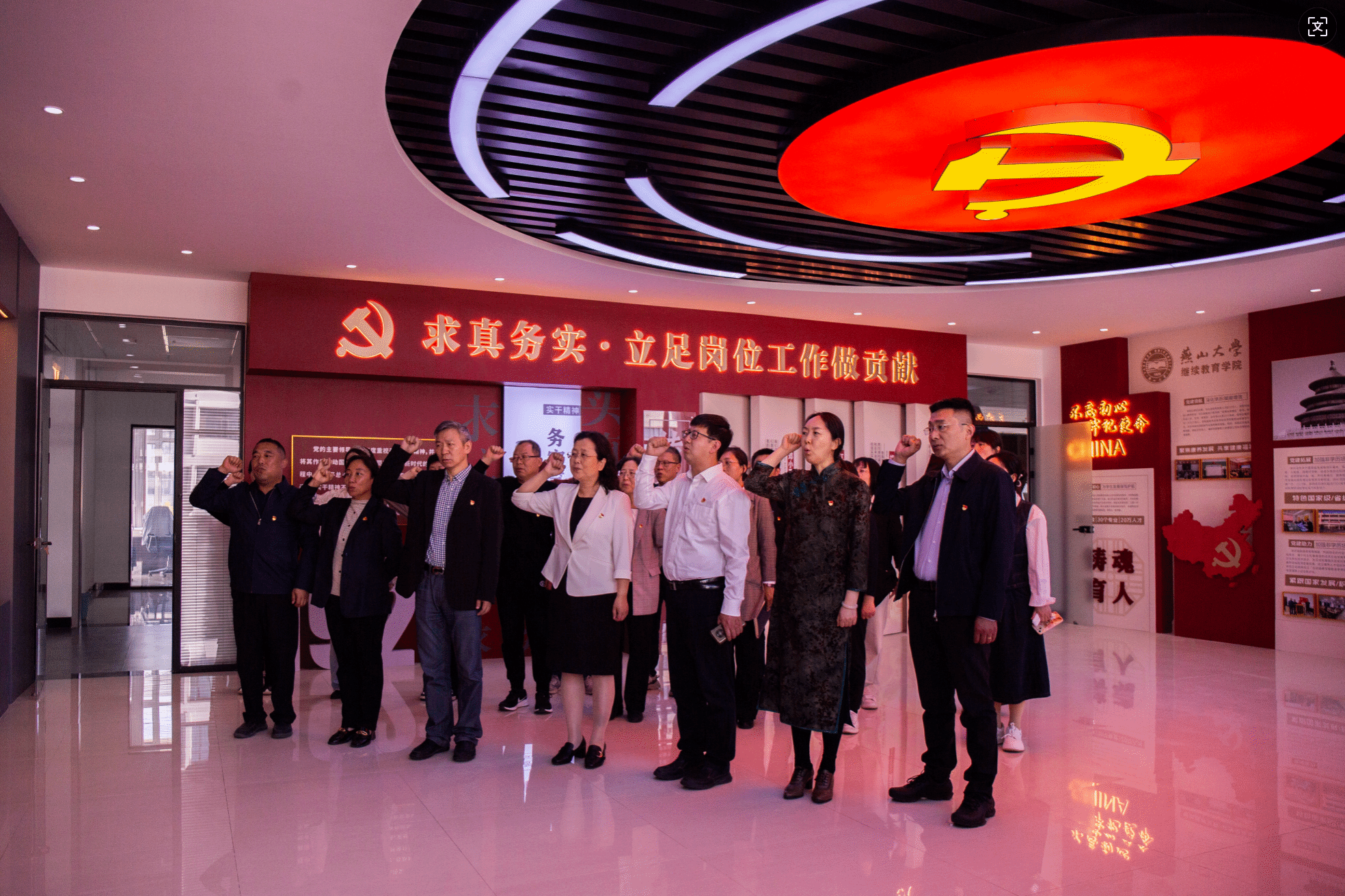 活动伊始,全体人员参观了继续教育学院党建活动室,深入了解了继续教育学院党建工作的特色与成果。参观结束全体党员在党旗下庄严列队,重温入党誓词,回顾党员初心使命。