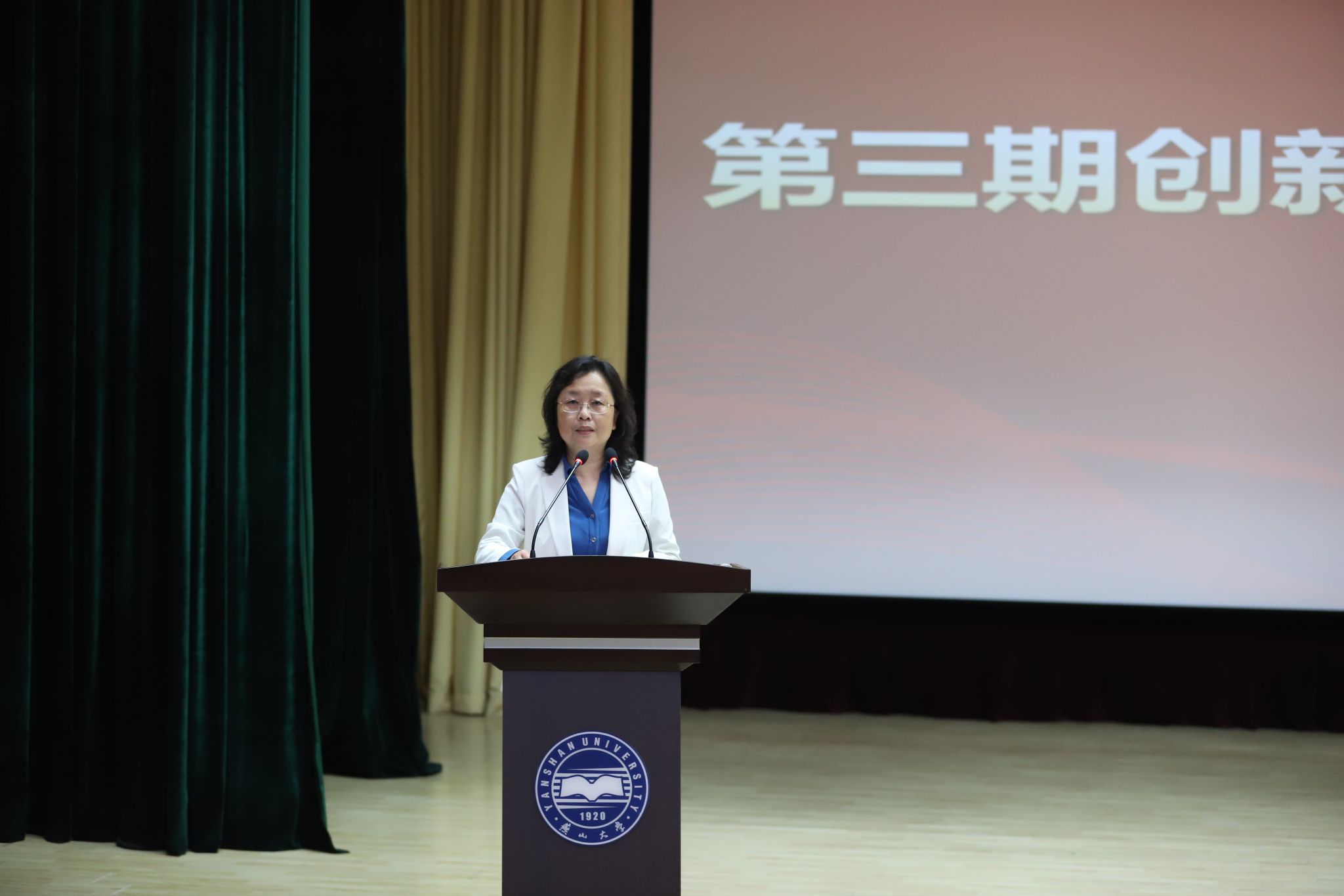 李春玲在开班仪式上讲话。她讲到,燕山大学始终坚守“匠心为国铸重器、矢志不移育英才”的初心和使命,在与民族复兴、国家发展的同频共振中一次次铸就辉煌。她指出,学校紧紧围绕立德树人和创新创业人才培养这个核心,根植创新基因于教育教学各环节,贯穿于人才培养全过程,创新创业教育工作取得一系列突出成绩。她指出,“跟党学创业”就是从党的百年征程中坚定信仰,从党的光辉历史中汲取力量,学习党艰苦奋斗、勇于创新的精神。她指出,青年学生要赓续精神血脉,争当创新先锋,践行家国情怀,不忘来时路,走好脚下路,坚定未来路,以实际行动诠释对党和人民的忠诚。她鼓励同学们通过创新创业实现梦想、亮丽青春,在实现中华民族伟大复兴中国梦的伟大征程上笃定前行,再建新功!