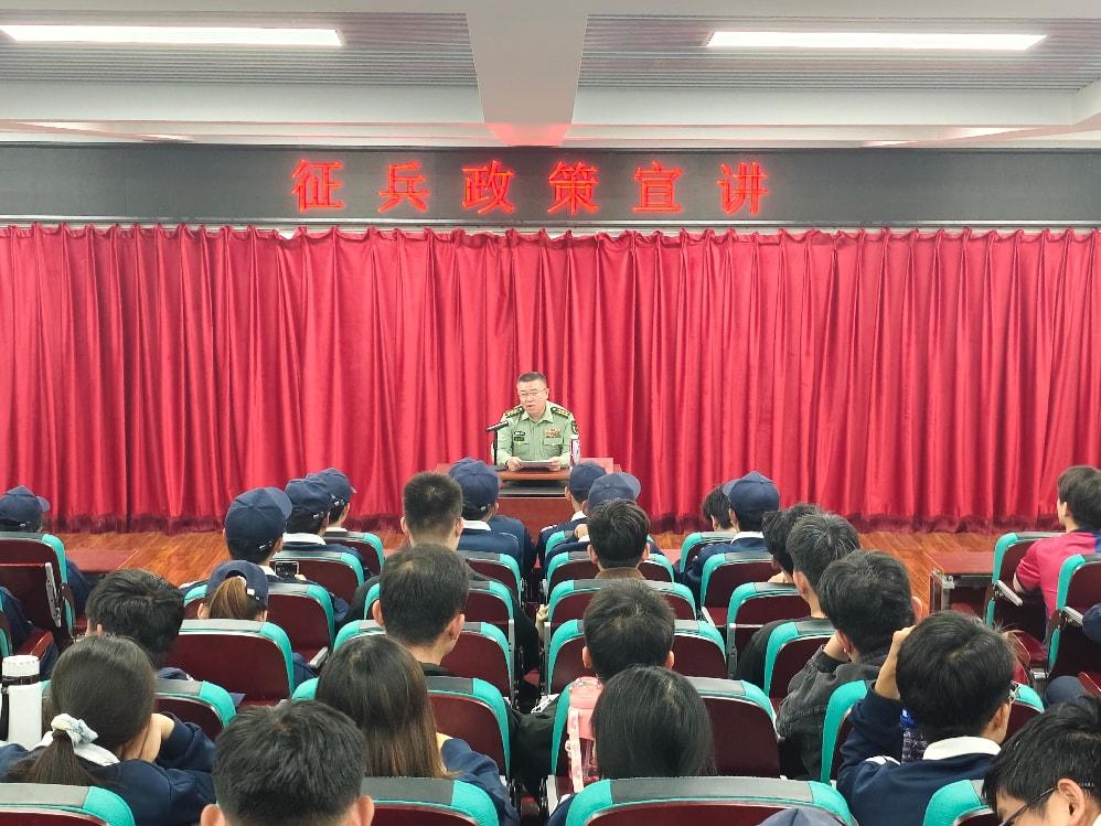 宣讲会现场,艾政委聚焦学生关切,侧重视力矫正手术时间要求、大学生士兵考研流程、特殊兵种选拔标准等政策要点展开深入宣讲。他结合《征兵工作条例》修订案,对各项政策的具体规定、执行细则及注意事项进行了系统解读和专业阐释。