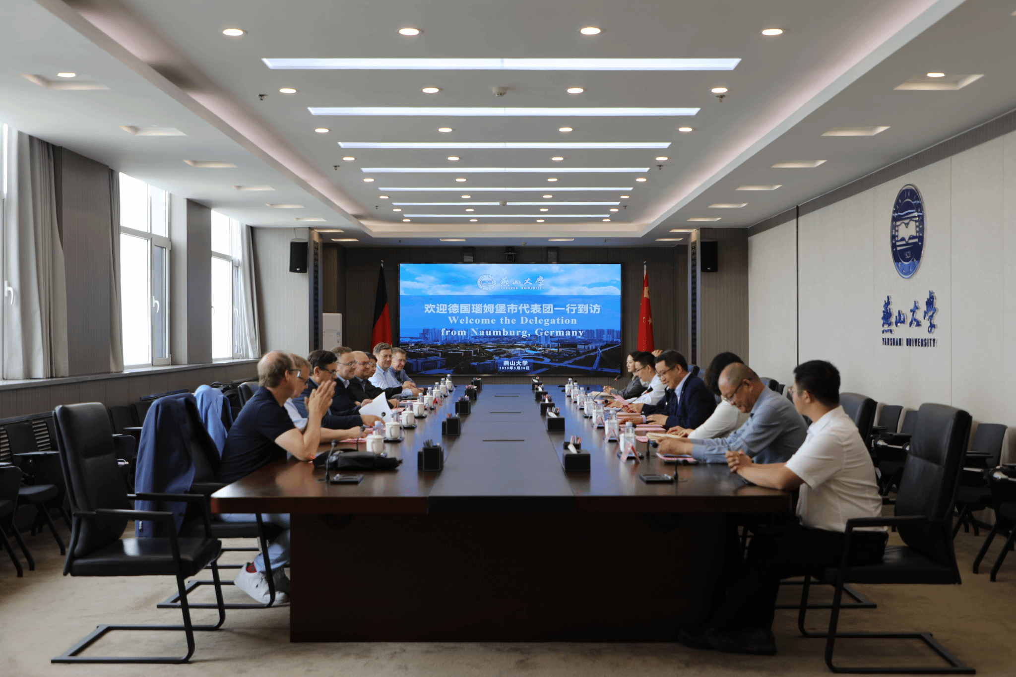 代表团由州议会议员丹尼尔·施图尔姆、瑙姆堡市议会主席约尔格·舒茨、市长阿敏·穆勒及梅泽堡应用科技大学校长马库斯·克拉贝斯等8人组成。秦皇岛市外事商务局四级调研员高凡,外办主任陆栩陪同来访。燕山大学国际合作处处长陆军、副处长朱虹等人出席会议。