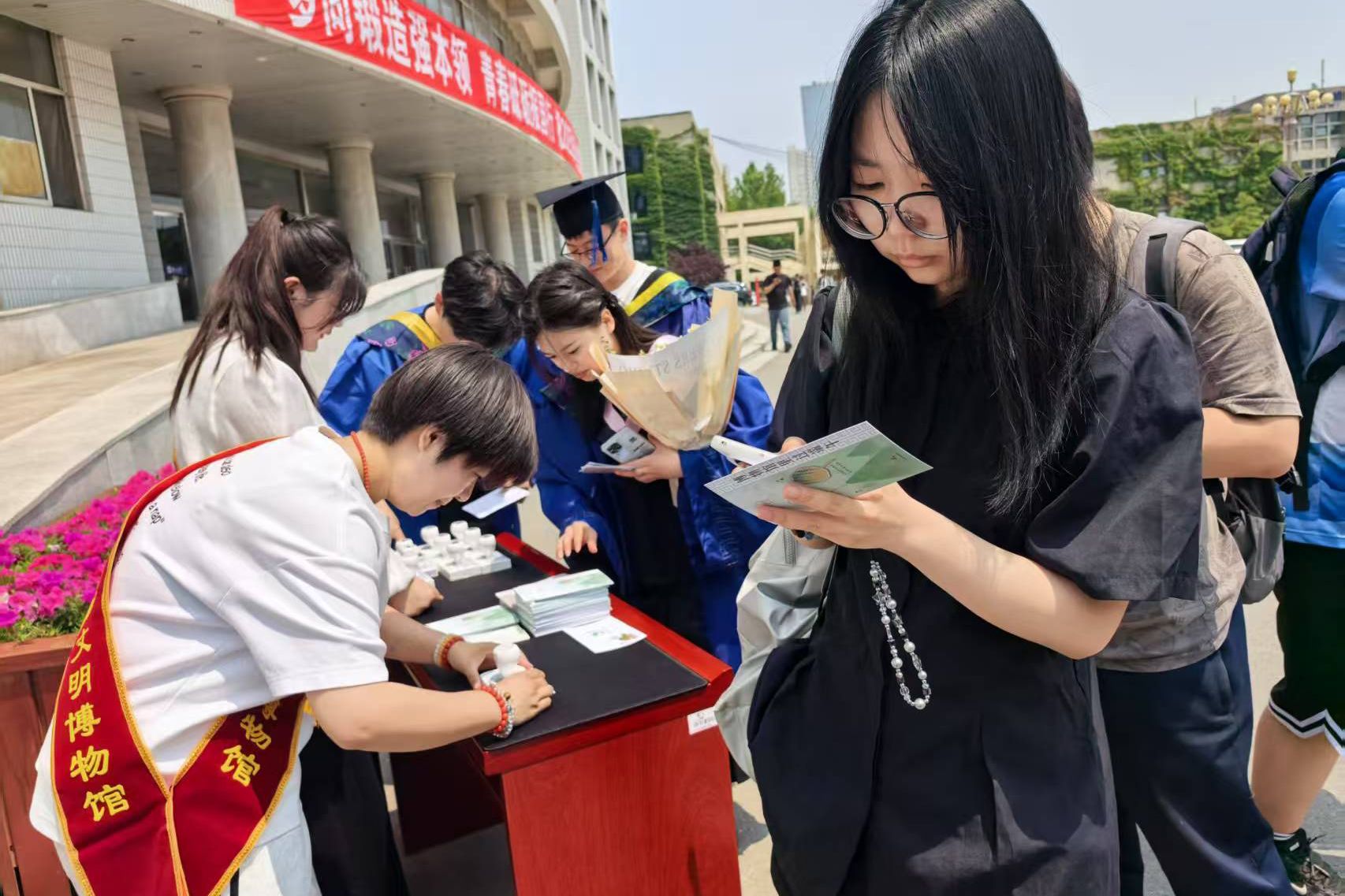 活动当天,除了可以沉浸式参观博物馆之外,还可以领取“博物馆里过端午”明信片,并盖端午节文创印章,让传统节日以更加生动的形式展现在观众眼前。这些明信片设计精美,融合了非遗课堂的体验内容和端午节的传统符号,讲述着古老而又生动的故事。文创印章更是别具匠心,每一印都仿佛为明信片增添了一份历史的厚重与文化的韵味。活动不仅让参与者们感受到了传统节日的欢乐,更在潜移默化中传播了丰富的历史文化知识。