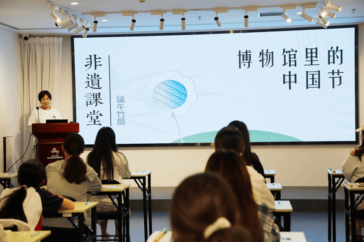 在一段介绍端午节视频之后,制作正式开始,参与者们开始亲手制作端午竹扇。制作竹扇的每一步都充满了传统文化的韵味。首先,参与者们小心翼翼地挑选着竹片,每一片都需薄厚均匀,以保证竹扇的坚固与美观。接着,在非遗讲解员的指导下,大家学习如何将竹片巧妙地编织在一起,形成扇骨。这一过程不仅考验着耐心与细心,更让大家深刻体会到了传统手工艺的魅力。制作完成后,大家手捧着自己亲手制作的端午竹扇,脸上洋溢着满足与喜悦的笑容。这不仅仅是一把扇子,更是承载着传统文化的珍贵艺术品。