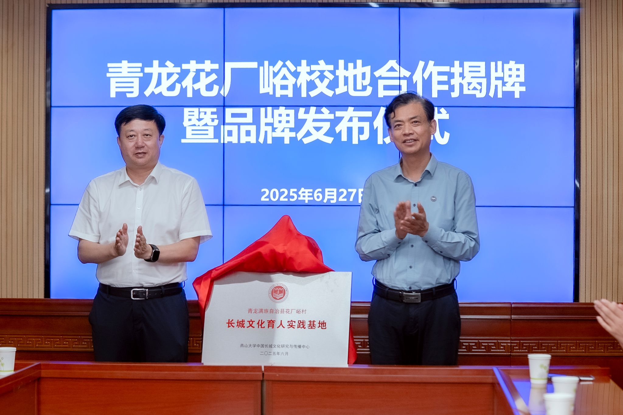 【新闻中心讯】6月27日下午,为纪念中国人民抗日战争暨世界反法西斯战争胜利80周年,教育部驻青龙挂职团队在革命老区花厂峪村广场组织了一场以“山河铭青史,奋进绘锦章”为主题的文艺演出暨青龙花厂峪村校地合作揭牌、村标发布仪式。本场主题文艺演出、校地合作、花厂峪村标设计是燕山大学对接教育部帮扶青龙专项工作的新成效。