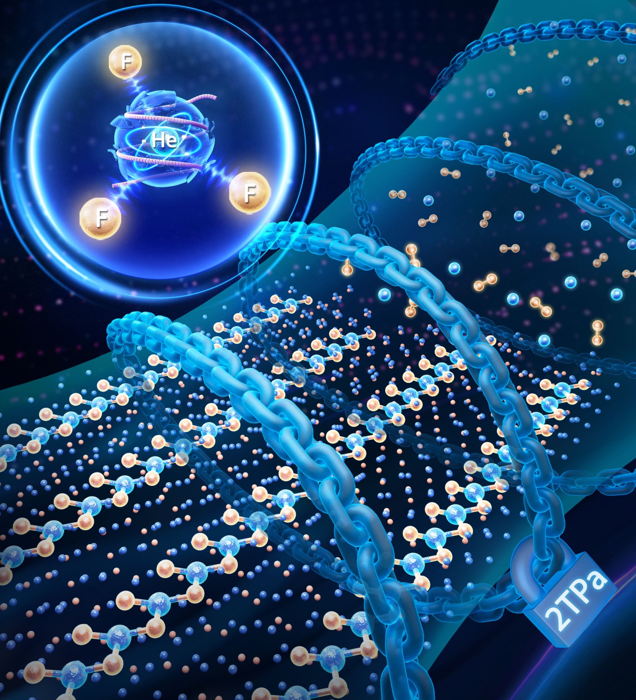 在化学元素的世界里,氟以“宇宙最强电负性”著称,而氦则是出了名的“化学宅男”,在常压下拒绝与任何元素反应。然而,燕山大学的研究人员却让这对“冰与火”的元素组合在极端条件下发生反应,首次形成了真正的氦化学键(helium bond),颠覆了传统认知。