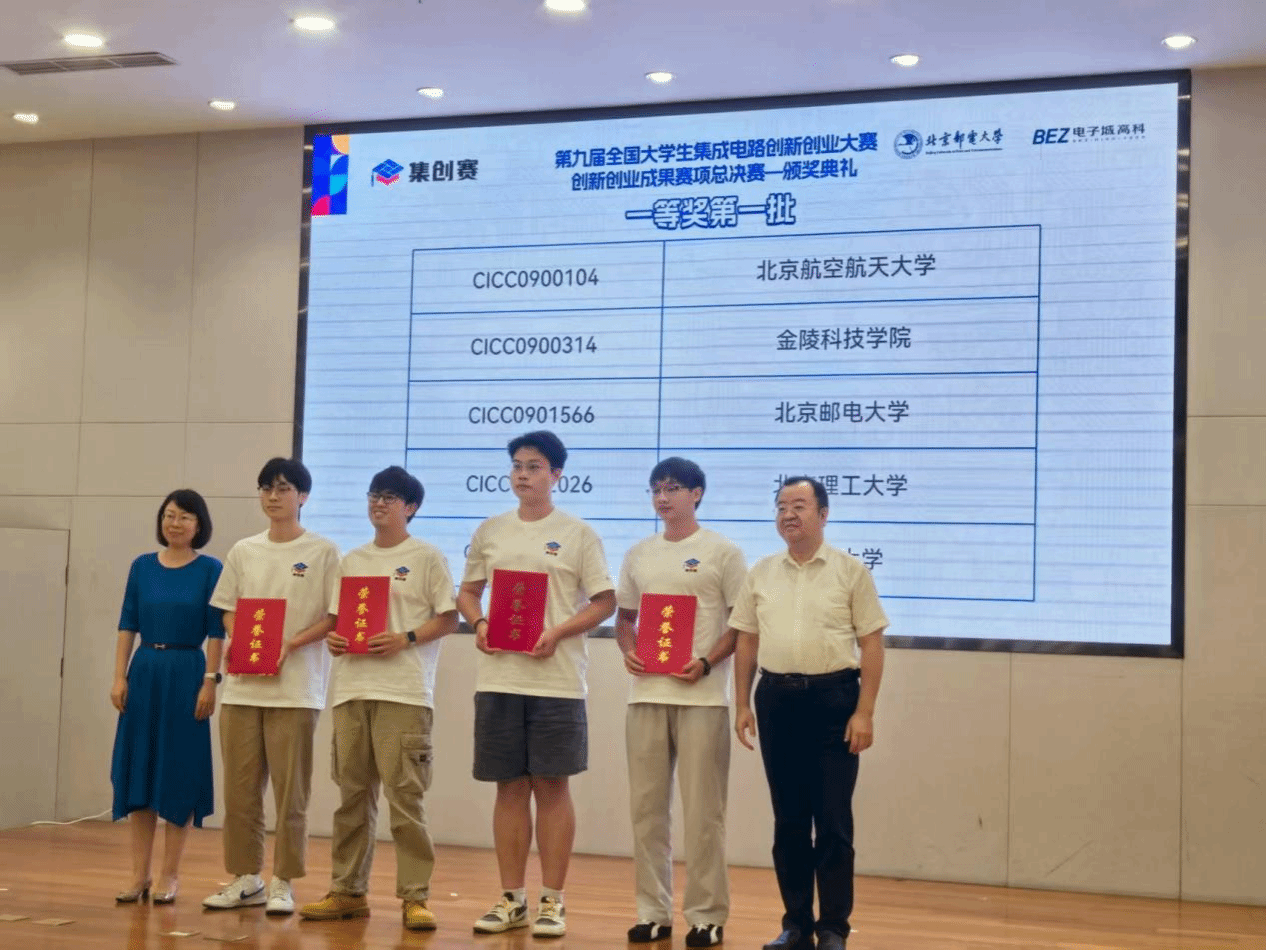 第九届集创赛于2025年1月启动,共分为4大赛道,11个技术方向,25个杯赛,覆盖集成电路全产业链,本届集创赛我校共13支队伍报名参赛,有4支队伍进入华北赛区决赛,获得华北赛区一等奖一项,二等奖一项,其中张文达队在创新创业成果杯赛项晋级全国总决赛。集创赛创新创业成果杯全国总决赛于2025年8月12日-14日在北京邮电大学举行,张文达队携其参赛作品《疾声讯安-声信安播守卫者》赴赛。在总决赛现场答辩中,张文达全面介绍作品设计思路及应用,并进行了现场演示,引起评委极大兴趣,面对评委提问亦能对答如流,取得赛道全国一等奖的优异成绩,刷新该赛项的最好成绩。