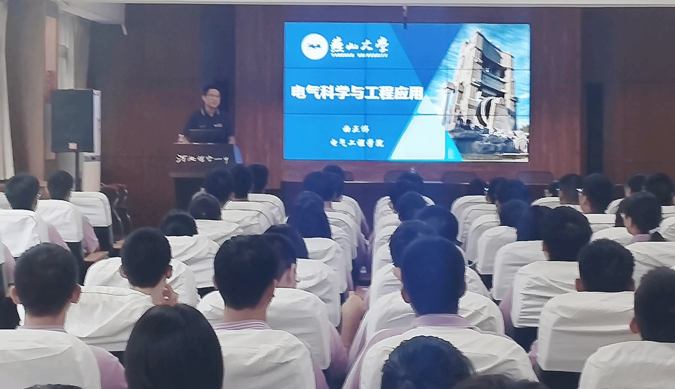 座谈会后,我校电气工程学院曲正伟教授为保定一中80余名师生作《电气科学与工程应用》科普讲座,鼓励学生们关注燕山大学,投身电气领域,发挥聪明才智,为实现中华民族伟大复兴和自己的价值理想而努力奋斗。讲座现场掌声雷动,此次招生宣传圆满收官、达到预期效果。