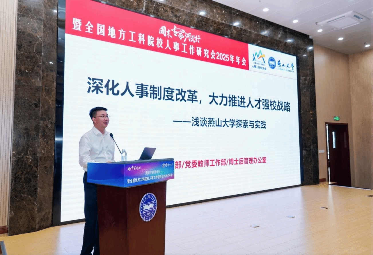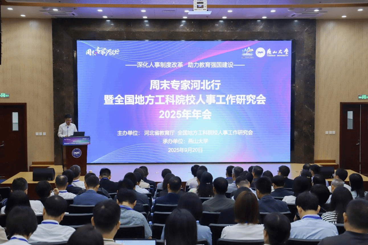 【新闻中心讯】9月20日至21日,“周末专家河北行”暨全国地方工科院校人事工作研究会2025年年会在秦皇岛成功举行,会议以“深化人事制度改革,助力教育强国建设”为主题,汇聚了来自全国37所院校的100余位代表,共同研讨“教育、科技、人才”一体化推进战略背景下,地方工科院校人事制度改革与高质量发展新路径。此次年会由河北省教育厅和全国地方工科院校人事工作研究会主办,燕山大学承办。