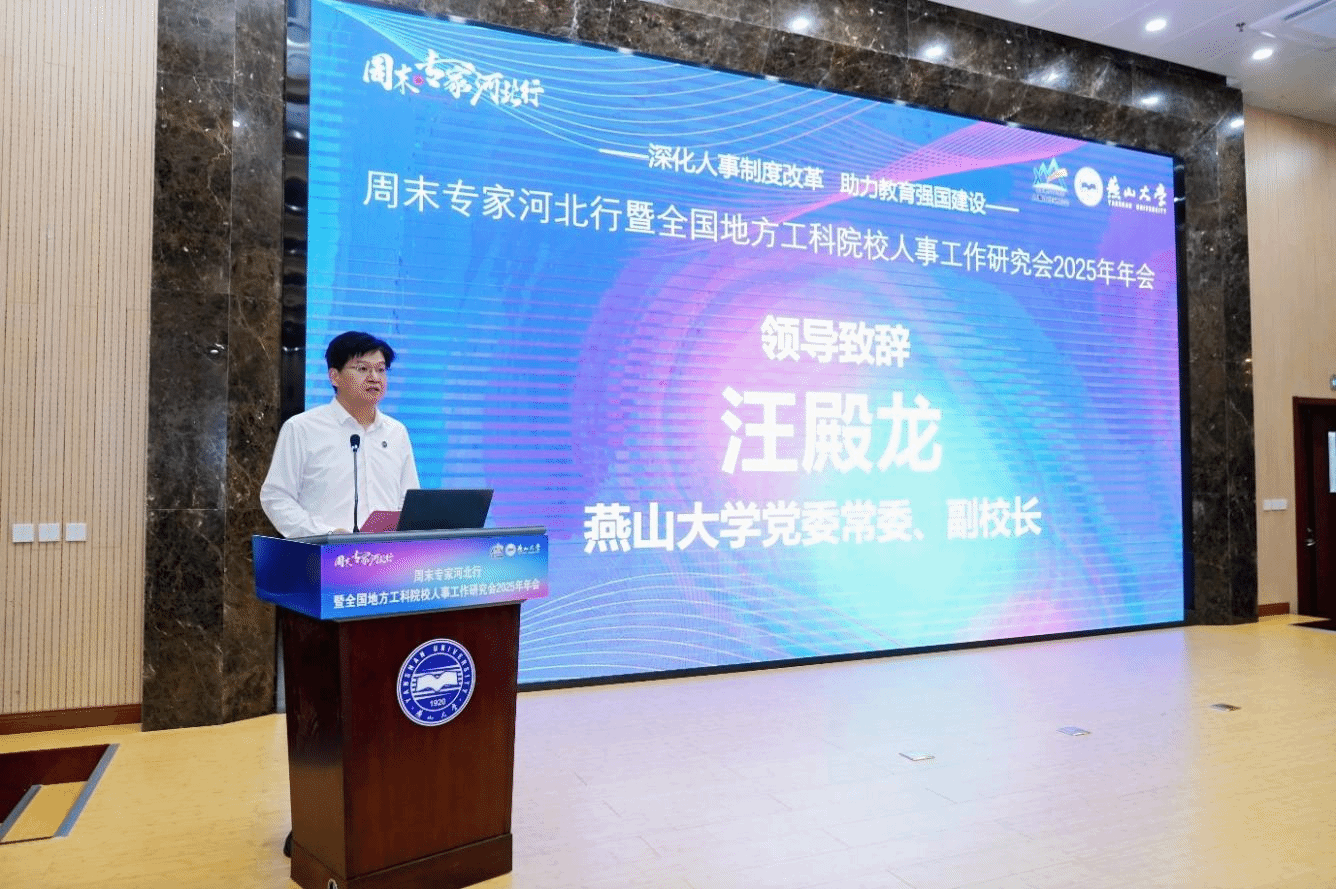 汪殿龙在致辞中表达了对与会代表的欢迎和感谢,他表示,本次年会是深入贯彻落实党的二十届三中全会和教育强国建设纲要精神,深化地方工科院校人事制度改革的重要交流平台,也是燕山大学积极响应河北省委、省政府决策部署,持续开展“周末专家河北行”的系列活动之一。正值“十四五”收官与“十五五”谋篇的关键节点,燕山大学将以此为契机,与兄弟院校携手,共谋发展良策,互鉴改革经验,为助推地方工科院校高质量发展、加快建设教育强国贡献智慧与力量。