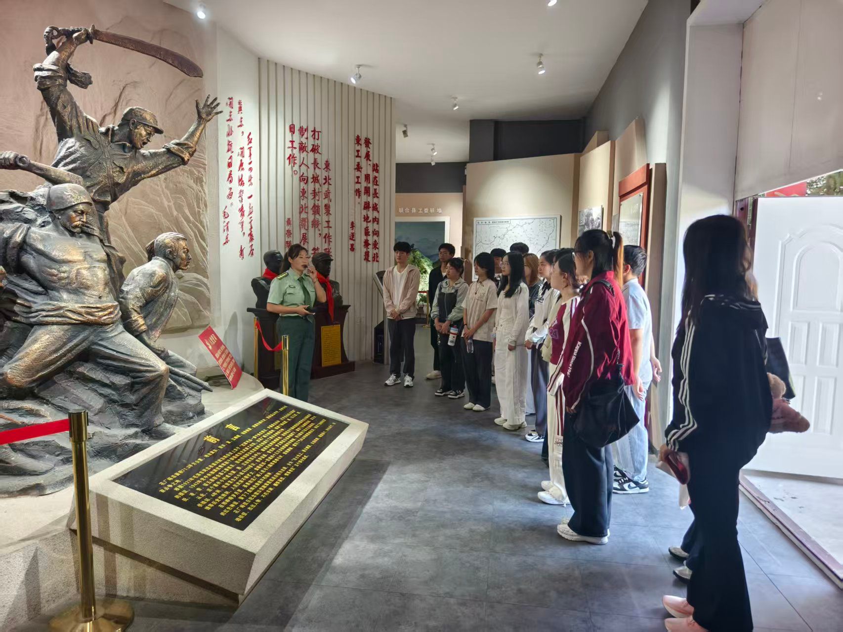 “由于特殊的地理位置和历史机缘,抗日战争时期,花厂峪曾发生大小战斗200多次,抗日军民在党的领导下,舍生忘死、无私奉献,书写了‘铜墙铁壁花厂峪,固若金汤靴脚沟’的红色赞歌……”在纪念馆内,青年学生们跟随讲解员的深情讲述,仔细观看历史照片、实物展陈和复原场景。当听到“百姓舍子掩护八路军”的伟大事迹时,在场学生无一不为之悲痛动容。文法学院(公共管理学院)本科生王鹤然表示“我们生活学习的这片土地上,曾经遭受过如此苦难,我们要时刻铭记历史、永远讴歌那些曾为了国家付出了鲜血与生命的英雄先烈,珍惜当下来之不易的和平。”