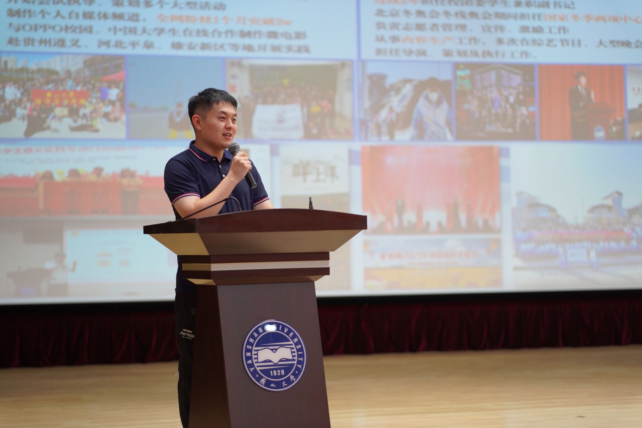 外国语学院2023级本科生王博文分享了“小镇做题家的升级打怪之路”,从抢做无人问津的主持助理到主持人大赛十强,从质疑“英语就业前景”到最终锚定“讲好中国故事”的方向,他鼓励新生“大学是旷野,每一次尝试都在拓宽人生半径”;材料科学与工程学院2023级本科生田颖讲述了“笨鸟先飞”的逆袭历程,以自习室为起点,她刷遍十年数学真题、累计写下上百页笔记、投入超400小时自习时长,从高中“下游学生”到专业第一的“博学精业奖”获得者,她证明“成长拼的不是天赋,而是脚踏实地的积累”;机械工程学院2022级本科生张靖欣结合20余次竞赛经历,拆解“理论+实践”的能力升级路径,分享了自己的大学竞赛“方法论”,印证了“走出舒适圈,在挑战中成长”的青春法则;马克思主义学院2024级硕士研究生栗颖与文法学院(公共管理学院)2024级硕士研究生王智健带来燕山大学研究生支教团跨越山海的支教故事,用行动诠释践行“青春之花绽放在西部”的誓言,号召新生锤炼个人本领,为祖国建设做出青春贡献;经济管理学院2023级博士研究生冯益为回顾十年燕园成长,从策划校园活动到乡村振兴实践,从冬奥赛场坚守到获评“中国好人”投身理论宣讲,他诠释了“青年与时代同频共振”的深刻内涵。