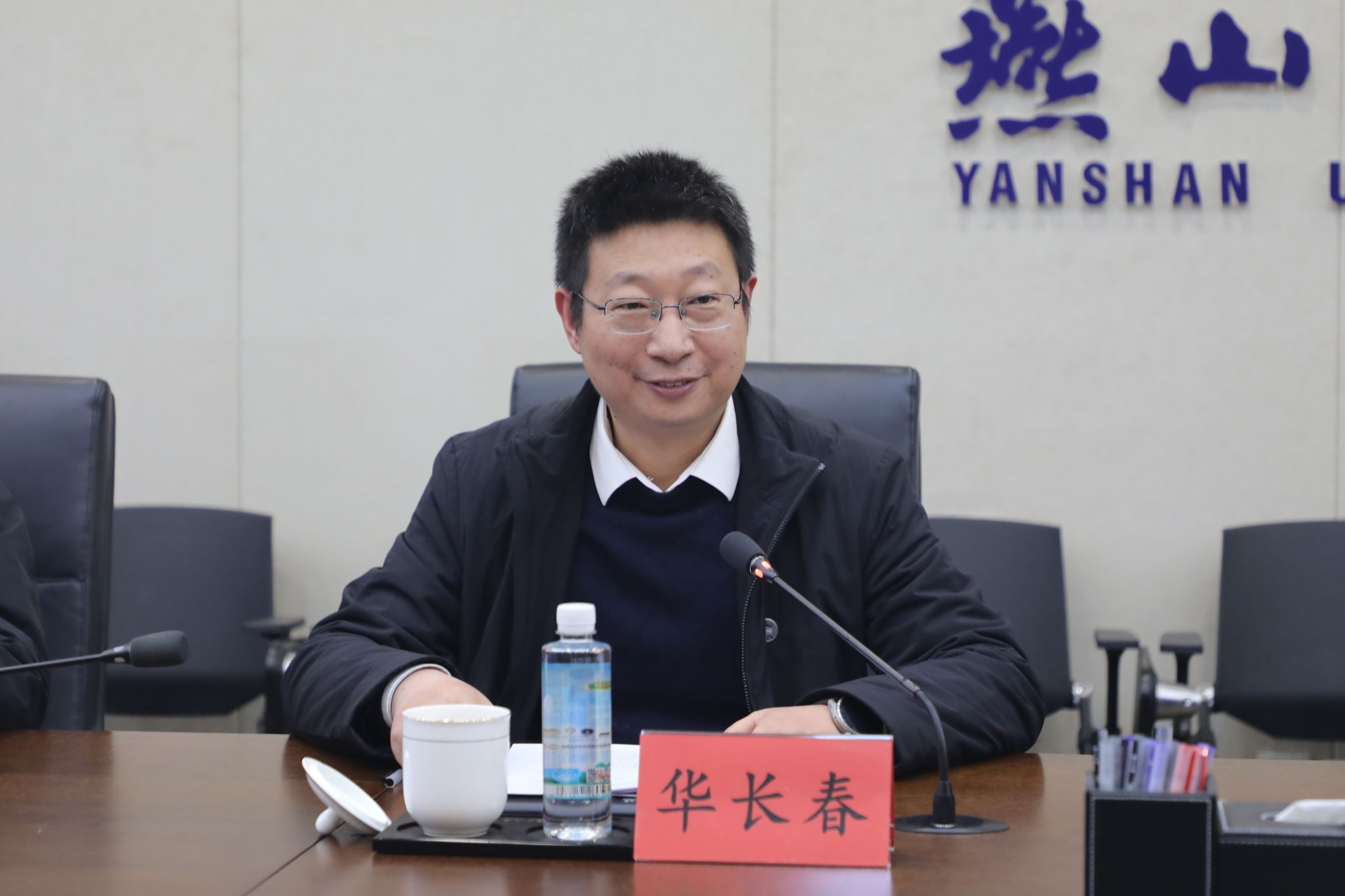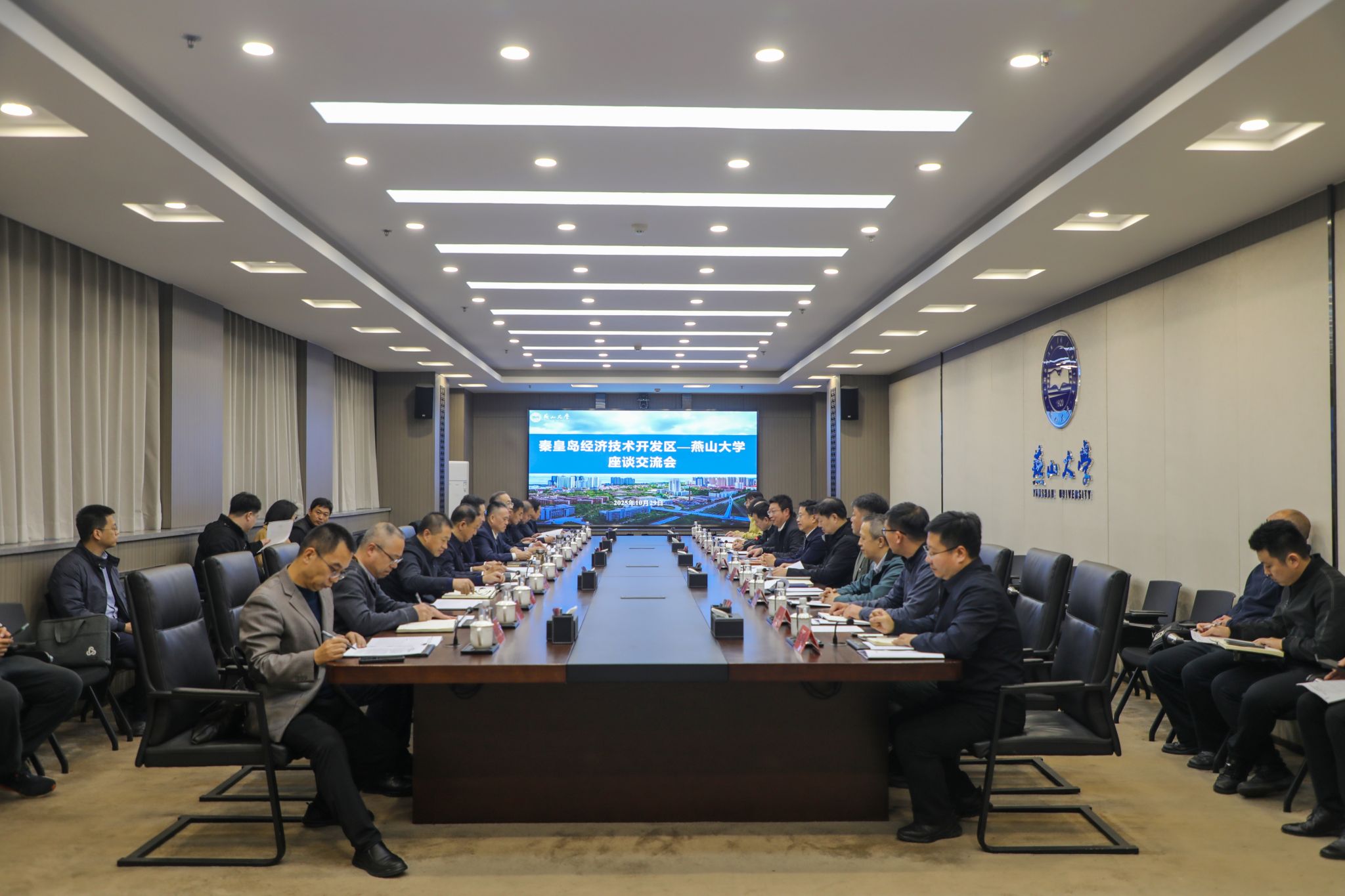 【新闻中心讯】为进一步深化校地合作,推动科技成果转化与产业创新发展,10月29日下午,秦皇岛市委常委、经济技术开发区党工委副书记兼管委会常务副主任樊海涛,党工委副书记、管委会副主任霍春利一行11人来我校对接交流。燕山大学党委书记赵险峰,党委副书记、校长王慧远,党委常委、副校长华长春出席座谈交流会。会议由华长春主持。