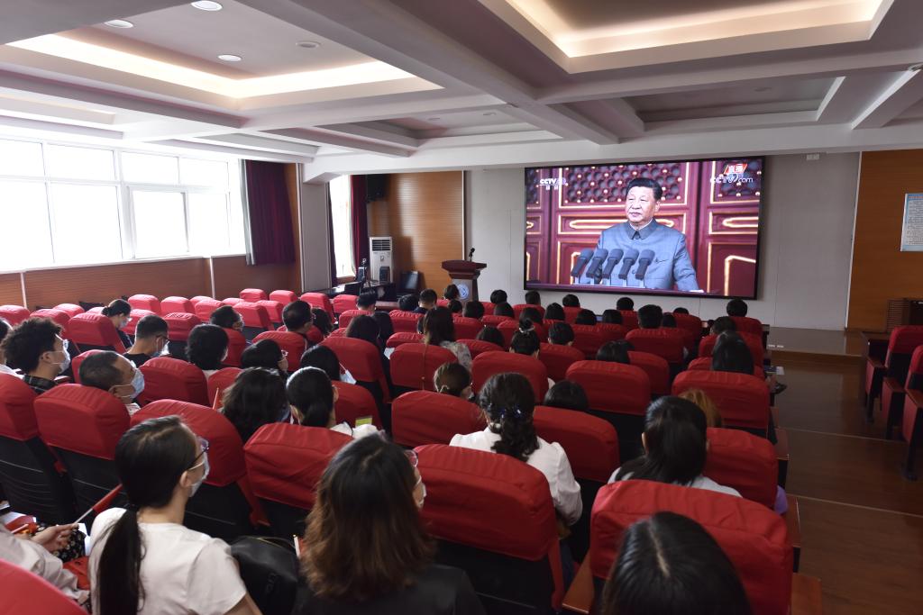 【新闻中心讯】7月1日上午8:00,庆祝中国共产党成立100周年大会在北京天安门广场隆重举行,中共中央总书记、国家主席、中央军委主席习近平发表重要讲话。总书记回顾了中国共产党团结奋斗、风雨同舟的光辉历程,展望了中华民族伟大复兴的光明前景,并向为党热血奋战的平凡英雄们致敬。经济管理学院党委在经管楼A218报告厅组织观看大会直播。学院全体教职工党员以及学生党员代表参加观看。直播观看由学院正处级专职辅导员刘琳主持。
