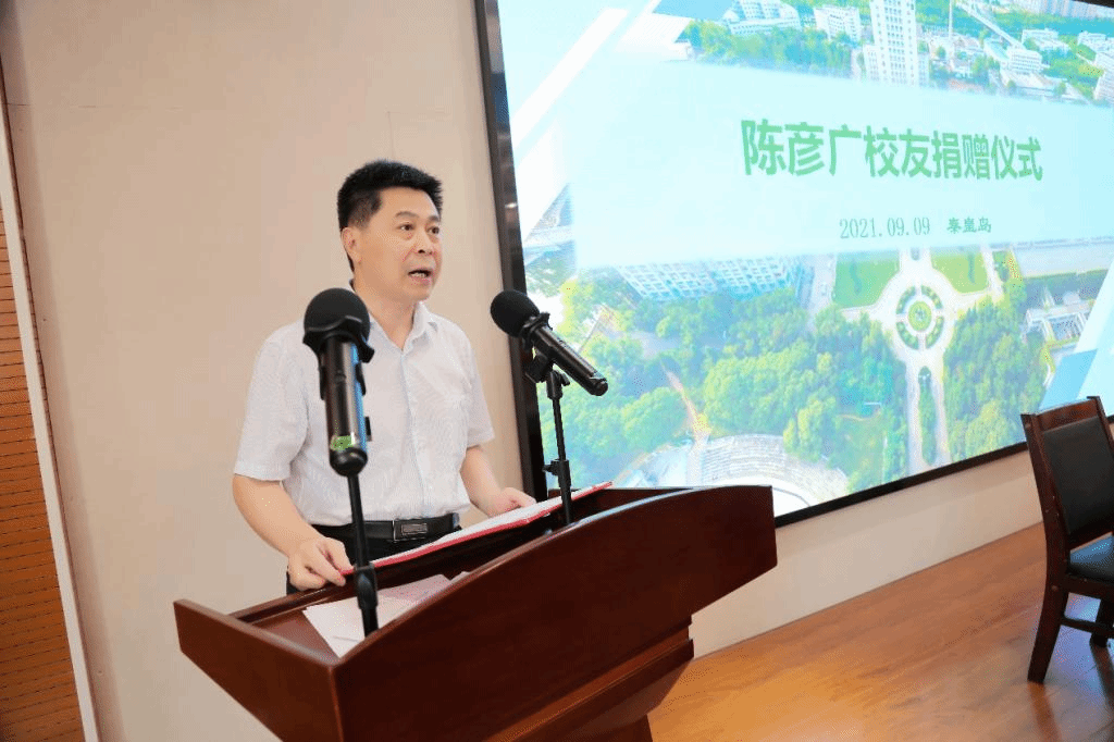 捐赠仪式上,经济管理学院院长李春玲回顾了陈彦广校友与学院的渊源,以及陈彦广校友萌生捐赠想法的初衷,对陈彦广校友的爱院情节表示赞许与衷心的感谢。她表示,陈彦广校友多年来一直关注学院发展,在人才培养、专业建设等多方面为学院助力。校友是学院最为宝贵的资源和财富,希望校友们继续和学院保持密切联系,在全面参与母校人才培养、科技服务、文化传承中打造校友文化品牌。