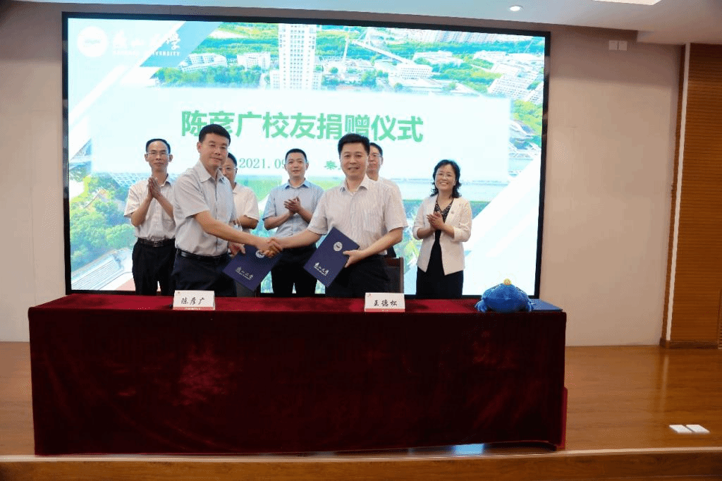 陈彦广校友与参加捐赠仪式的师生代表合影留念