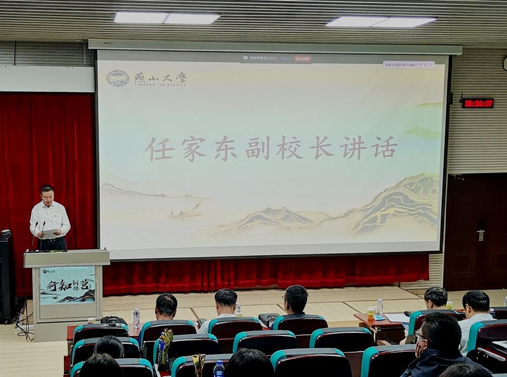 任家东代表学校发表讲话,对同学们在本次训练营中所获得的成绩提出表扬,对各位校友为此次训练营提供的支持和付出的辛勤工作表示感谢,对校友与母校之间的合作发展提出建议,提出把学校人才培养、科技创新真正与企业的发展相结合,要脚踏实地干事情,真正实现双方的合作共赢