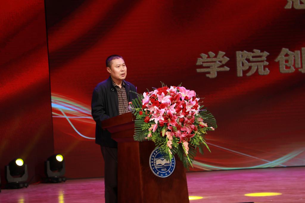 芳林新叶催陈叶,流水前波让后波。学院党委书记甄红军向学院创业前辈代表吴勇、李福亮、多淑金、祝天福、惠吉兴、余子新老师颁发奖杯,年轻的教师们怀揣敬意向他们献上鲜花。惠吉兴老师致辞,回忆了学院繁荣发展的风雨历程,回顾了和其他前辈们用半生奋斗践行着教育使命的峥嵘岁月。