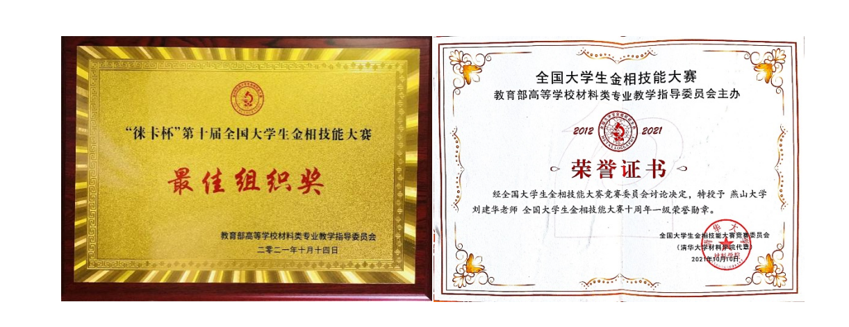 团队荣获“最佳组织奖”及刘建华老师荣获金相技能大赛一级荣誉勋章