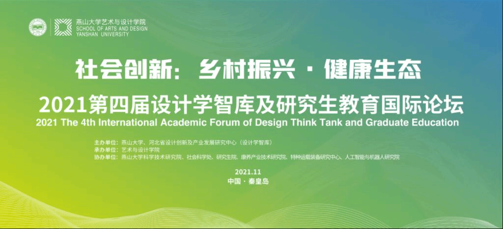【新闻中心讯】11月12日-13日,“社会创新:乡村振兴·健康生态,设计前沿与研究生教育”2021年第四届河北省设计学智库及研究生教育国际论坛在线上召开。本次活动由燕山大学、河北省设计创新及产业发展研究中心主办,燕山大学艺术与设计学院承办。