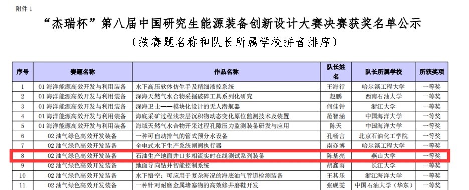 “杰瑞杯”中国研究生能源装备创新设计大赛是“中国研究生创新实践系列大赛”主题赛事之一,由教育部学位与研究生教育发展中心和中国科协青少年科技中心联合举办。本届大赛以“竞赛培养人才、人才引领创新、创新驱动发展”为主题,涵盖海洋能源、油气资源、风能、太阳能等多类高效开发能源装备的创新设计,共吸引全国170所高校、院所的1261项作品参赛,参与学生5339人。(编辑 岳睿燕)