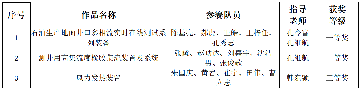 【新闻中心讯】11月20日至21日,“杰瑞杯”第八届中国研究生能源装备创新设计大赛全国总决赛在哈尔滨工程大学举行。经过激烈角逐,由信息科学与工程学院孔令富教授、孔维航副教授指导的陈基亮、郝虎等研究生团队的参赛作品《石油生产地面井口多相流实时在线测试系列装备》获得大赛一等奖,由信息科学与工程学院孔维航副教授指导的张曦、赵功达等研究生团队的参赛作品《测井用高集流度橡胶集流装置及系统》获得大赛二等奖,由车辆与能源学院韩东颖教授指导的朱国庆、黄岩等研究生团队的参赛作品《风力发热装置》获得大赛三等奖,孔令富教授和孔维航副教授分别获得优秀指导老师奖,同时,我校被评为第八届中国研究生能源装备创新设计大赛优秀组织单位。这是我校首次在本项赛事中取得佳绩。