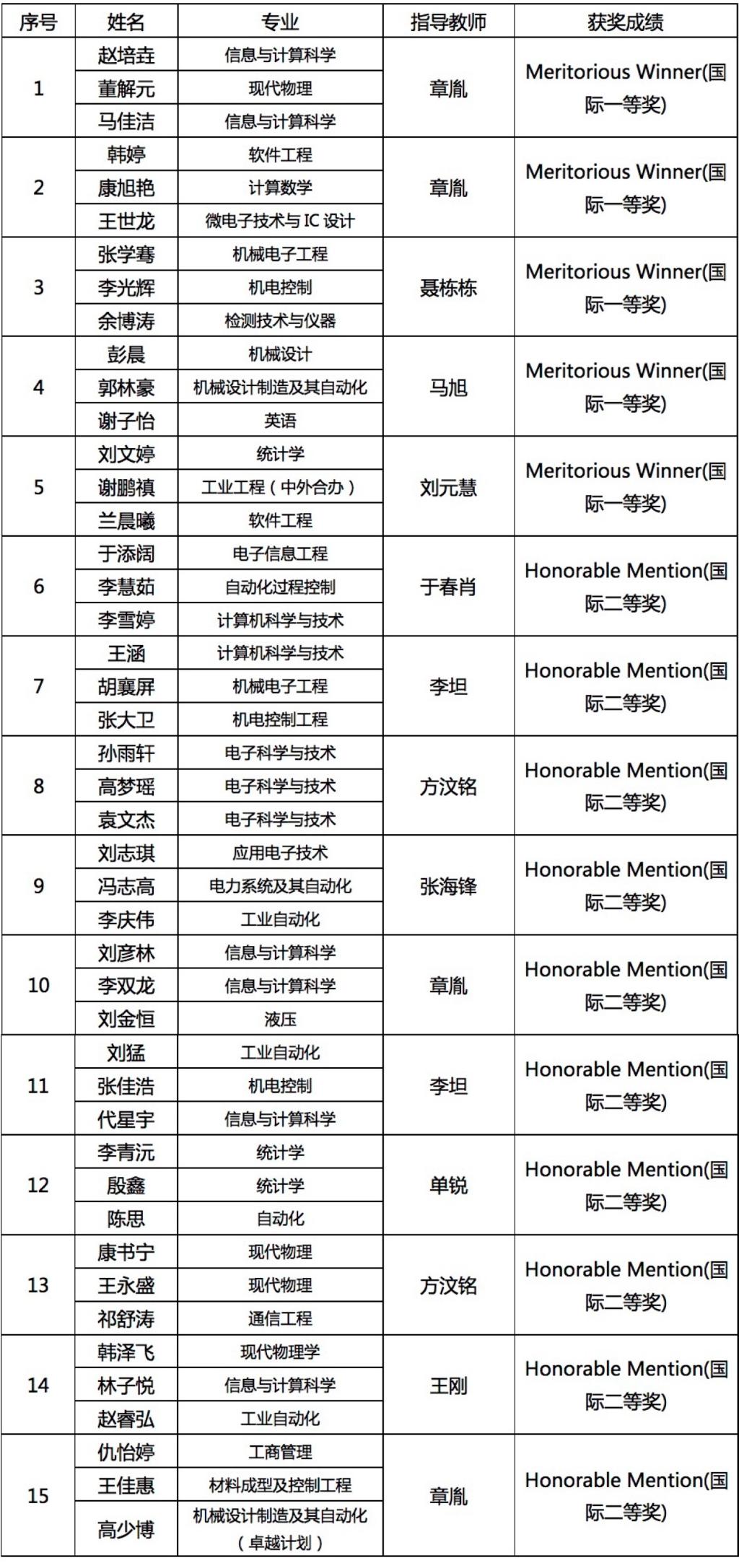 【新闻中心讯】近日,2022年国际大学生数学建模竞赛(MCM/ICM)结果揭晓,我校学生获得国际一等奖(Meritorious Winner)5项,国际二等奖(Honorable Mention)10项,获奖总数突破历史最好成绩。