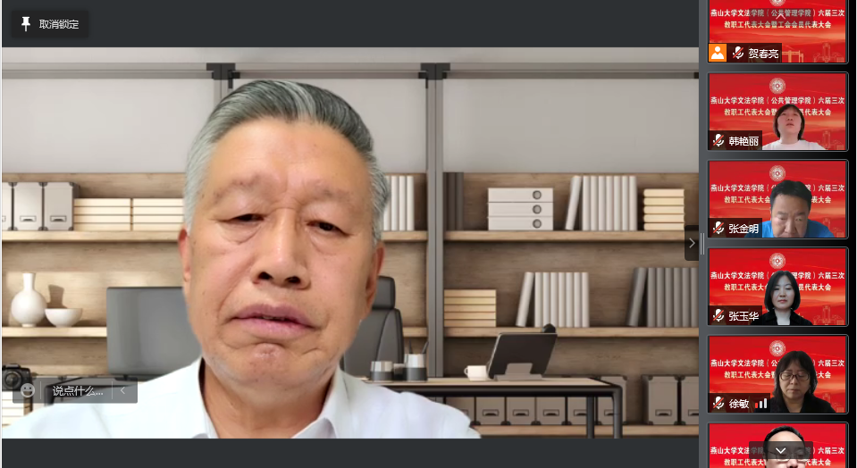 【新闻中心讯】5月26日下午,文法学院(公共管理学院)六届三次教职工暨工会会员代表大会通过腾讯会议召开。学院全体教职工参加会议,会议开幕式由副院长丛鑫主持。