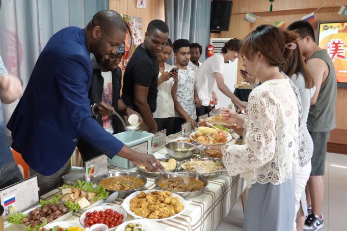 【新闻中心讯】为丰富留学生校园文化生活、弘扬中国传统美食文化、同时加强中外美食文化交流,国际教育学院举办了以“看世界风采,品舌尖美味”为主题的国际美食文化节活动。活动分为中华美食厨艺大赛和丝路美食品鉴两个篇章,通过留学生们亲手制作中国传统美食和本国特色美食,让各国美食文化在欢乐活泼的气氛中相互交流,通过美食建立桥梁,通过交流建立友谊,加深中外学生了解。