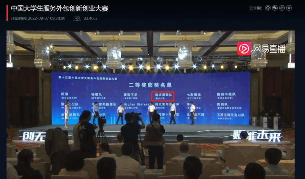 中国大学生服务外包创新创业大赛创办于2010年,由教育部、商务部联合主办,大赛已列入中国高等教育学会发布的“全国高校学科竞赛排行榜评估体系”,成为评估全国高校创新创业人才培养质量的指标之一。大赛已连续成功举办了十三届,形成西部、中部、东部区域赛覆盖全国的发展新格局,实现了从校内赛、区域赛到全国总决赛的赛制进阶。作为服务外包领域唯一的国家级赛事,大赛累计吸引了1600余所院校、近50万名大学生参赛,为服务外包产业输送了15余万名创新人才。
