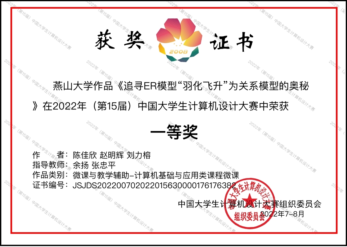 燕山大学参加2022年(第15届)中国大学生计算机设计大赛国赛成绩