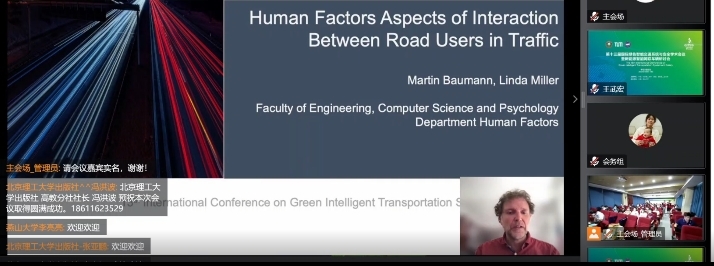 开幕式后,大会分主题报告、分组报告两大环节进行。主题报告由燕山大学车辆与能源学院副院长李昊教授和东南大学沈永俊教授主持,国内外知名专家学者慕尼黑工业大学克劳斯·本格勒(Klaus Bengler)教授、乌尔姆大学马丁·鲍曼(Martin Bauman)教授、同济大学孙剑教授、江苏大学蔡英凤教授、北京理工大学王武宏教授、燕山大学金立生教授、北京航空航天大学鲁光泉教授等人分别就“城市自动驾驶、人车交互、虚拟仿真、数据融合”等为主题进行了大会报告,系统地介绍了各领域的前沿技术、发展趋势及团队的最新研究成果。