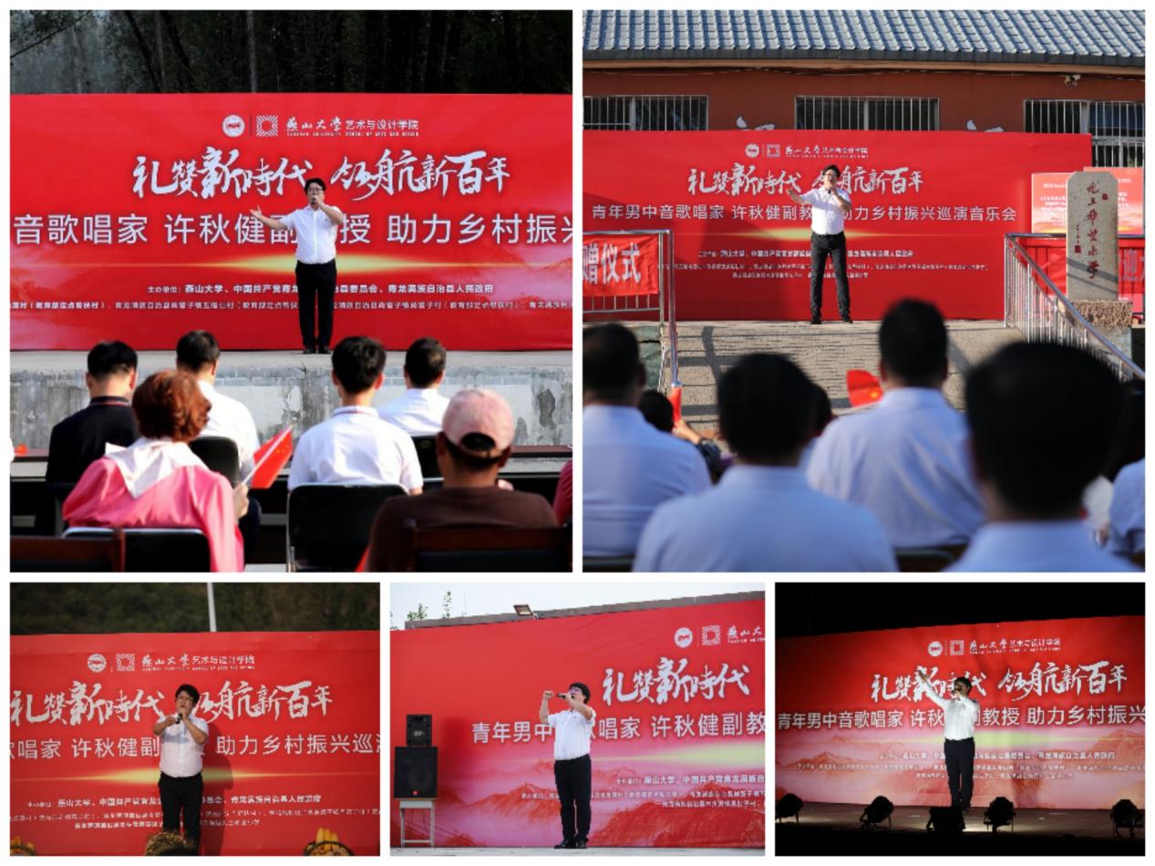 【新闻中心讯】喜迎二十大,奋进新征程。为深入贯彻习近平总书记在中国文联十一大、中国作协十大开幕式上的重要讲话精神,用高雅艺术进一步丰富群众文化生活,树立文明乡风,赋能乡村振兴,9月17日-9月26日,“礼赞新时代,领航新百年”——燕山大学艺术与设计学院许秋健副教授的助力乡村振兴巡演音乐会在秦皇岛市青龙县教育部重点帮扶村、九三希望小学等5个乡村成功举办。秦皇岛市副市长李国强,燕山大学党委书记赵险峰,党委常委、副校长陈国强,青龙满族自治县县委书记李耀滨、教育部驻青龙副县长汪立峰等领导先后出席音乐会现场。