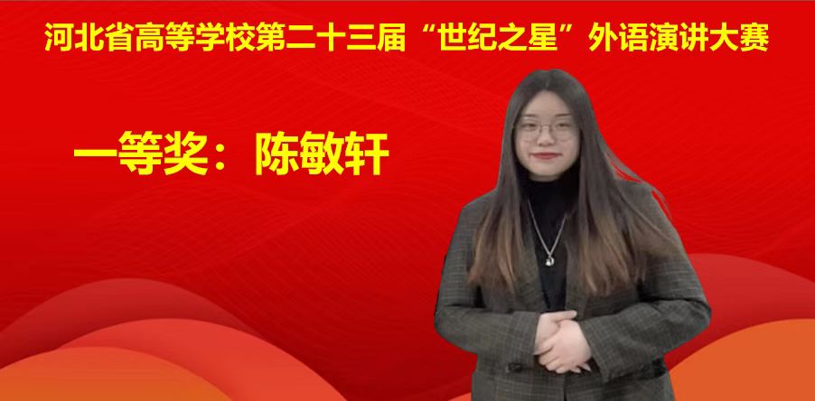 “世纪之星”外语演讲大赛由河北教育厅、河北省高等学校外语教学指导委员会主办,河北省高等学校外语教学研究会承办。该项赛事是“外研社∙国才杯”全国大学生外语演讲比赛的省级选拔赛,是我校的一类学科竞赛。赛事组织参赛工作得到学校的高度重视和创新创业教育与指导中心的大力支持。