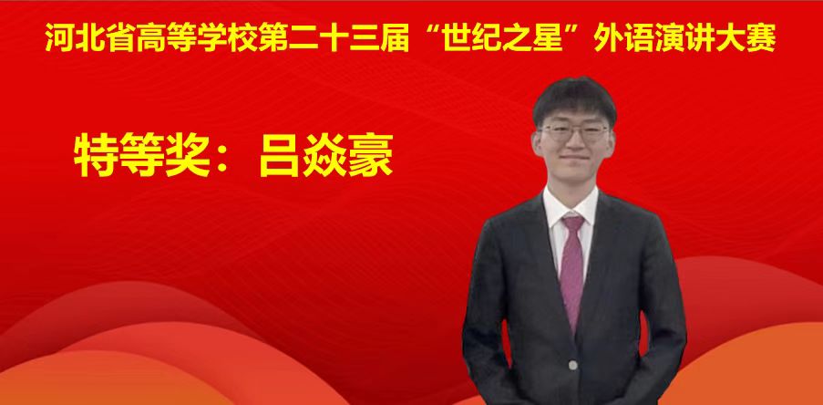 【新闻中心讯】11月19日,河北省高等学校2022年“世纪之星”外语演讲大赛决赛落下帷幕。来自全省各大高校的50名顶尖演讲选手参赛,经过激烈角逐,燕山大学参赛团队勇创历史佳绩,三名参赛选手分别获得河北省外语演讲大赛特等奖、一等奖及二等奖。其中,信息科学与工程学院(软件学院)的吕焱豪同学获得非英语专业组特等奖,外国语学院陈敏轩同学获得英语专业组一等奖,外国语学院乔柏霖同学获得日语专业组二等奖。张丽英老师、张馨月老师及徐香丹老师分别获得指导教师特等奖、一等奖及二等奖。在六晋三国赛选拔阶段,燕山大学吕焱豪同学脱颖而出,将代表河北省参加“外研社∙国才杯”全国大学生英语演讲比赛。